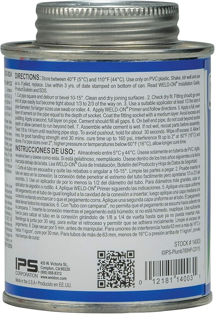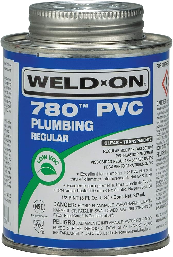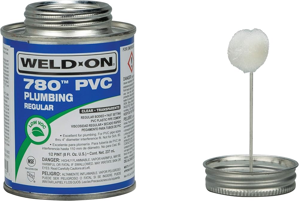 Formulated for versatility, Weld-On 780 PVC Plumbing Solvent Cement delivers high-strength bonding and stability that plumbing professionals can rely on for a variety of piping installations. This PVC plumbing cement creates a deep fusion between pipes and fittings with an interference fit up to a 4-inch diameter. It is suitable for all classes and schedules of PVC, except Schedule 80. The clear PVC plumbing solvent cement excels across a range of applications, including potable water pressure systems, sewers, and DWV (drain, waste, and vent) systems. With its regular-bodied viscosity and fast relative set time, this PVC plumbing solvent cement applies smoothly and sets quickly to facilitate efficient PVC welding. A preferred choice of contractors worldwide, Weld-On solvent cements are recognized globally for their industry-leading strength and ease-of-use. Commonly referred to as PVC glue, PVC solvent cement fuses pipes and fittings at the molecular level for a durable and long-lasting joint. Choose from a wide selection of Weld-On solvent cements to find the product that is perfect for your application.