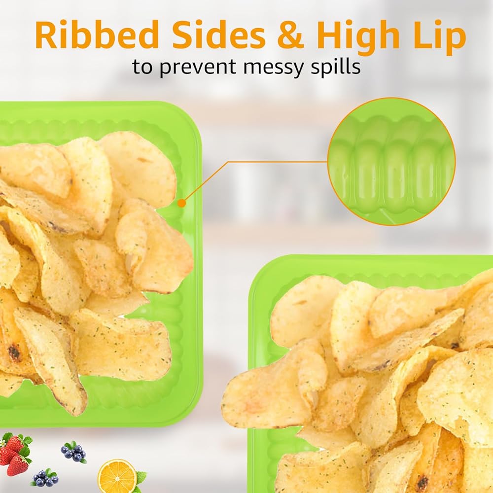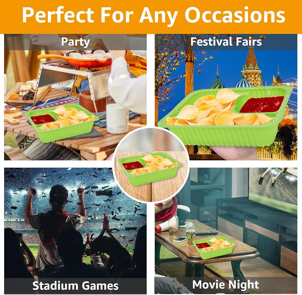 【لا داعي للقلق من الانسكاب】-- يمكن استخدام كل صينية ناتشوز للاستمتاع بمجموعة متنوعة من الأطعمة دون القلق بشأن الانسكابات أو الكسر. تضيف الجوانب المضلعة القوة والمتانة، حتى عندما تكون في الحركة، مما يضمن عدم الانزلاق أثناء الاستمتاع بالطعام والمرح. يمكنك أيضًا تقديم الطعام الدافئ بالداخل دون القلق بشأن حرق فتحة في الصينية. كما أنها مقاومة للشحوم، لذلك لا داعي للقلق بشأن أي تسرب أو انسكابات للشحوم أو الصلصة.