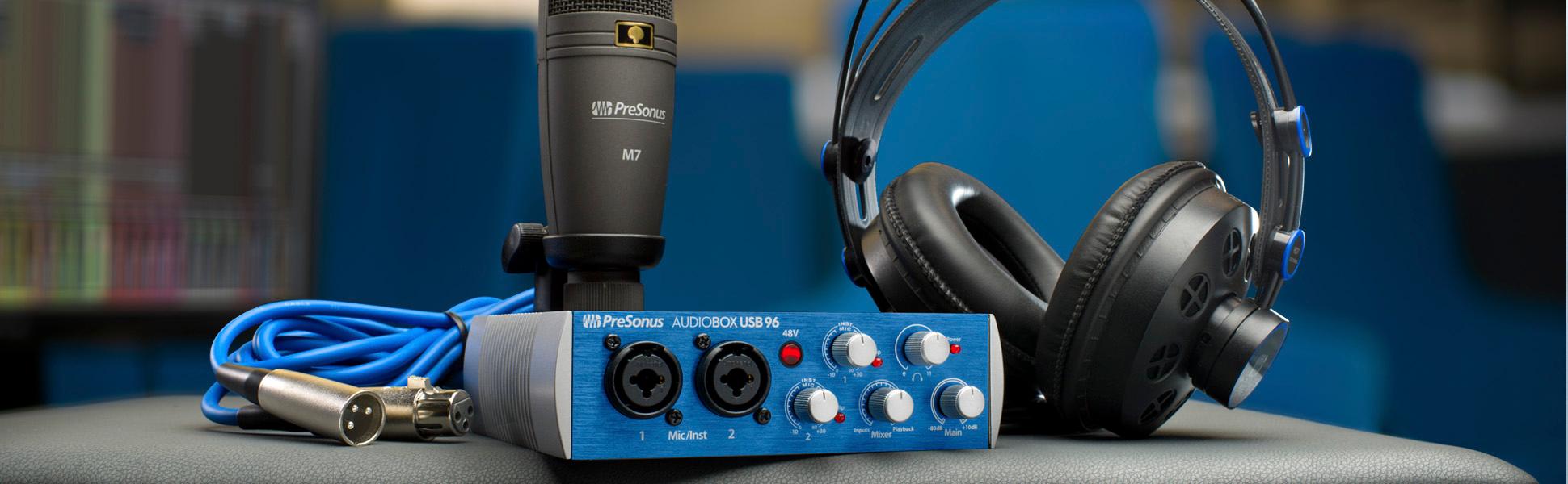 Rugged AudioBox USB 96 audio/MIDI interface for recording vocals and instruments.