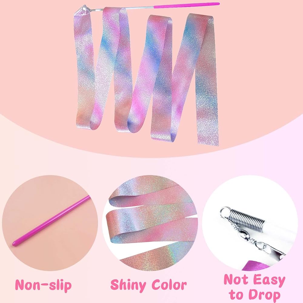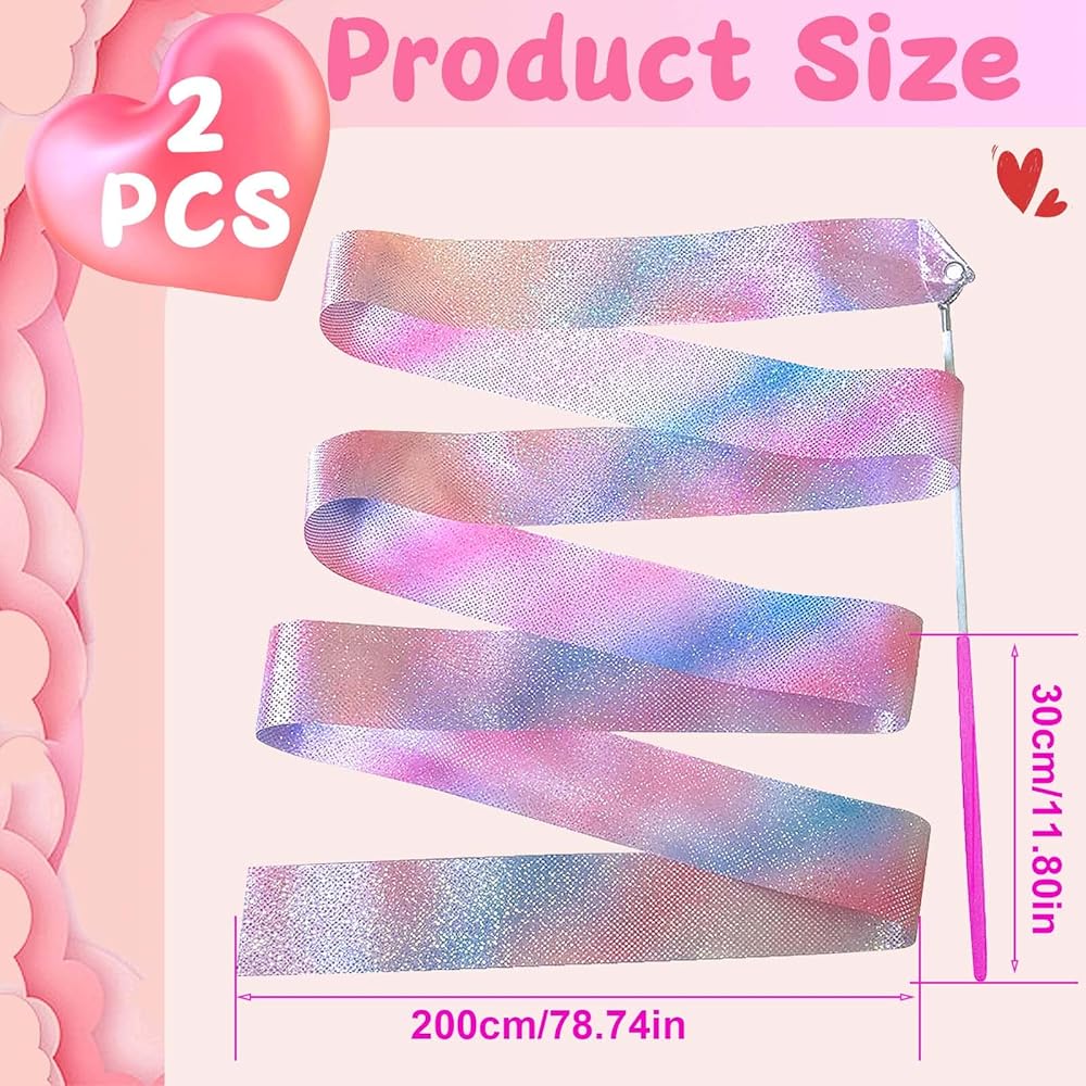 • Package Includ:This product includes 2 pieces of shiny color dance ribbons.The size of single piece is 200cm/78.74inch.It can improve children's enthusiasm for exercise and is very suitable for gymnastics training or daily use.
