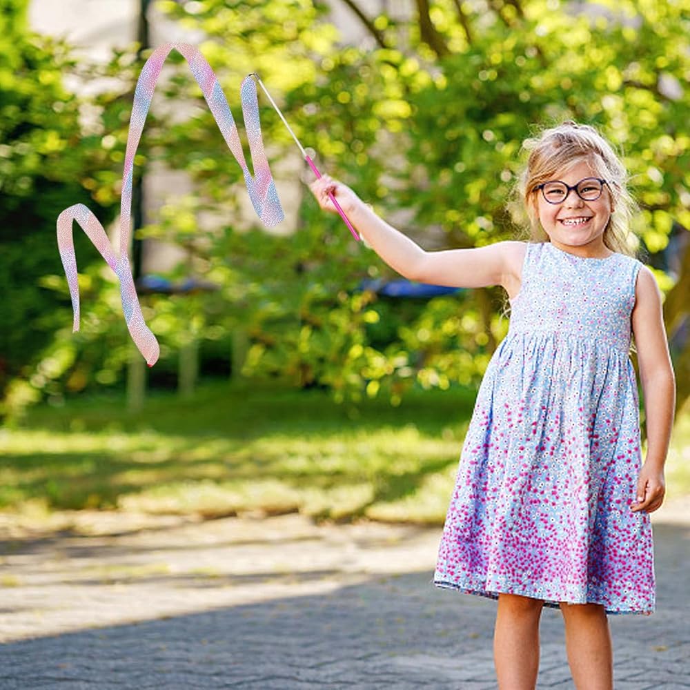 Sparkling Dance Ribbons,2 Pcs 78.7 Inch Ribbon Dancer Wand for Kids Rhythmic Gymnastics Ribbon Streamers Dancing Twirling Ribbons for Girls,Dancer Dancing Training Birthday Party Performance