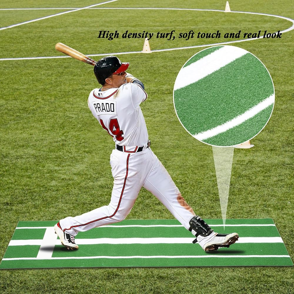 【الحجم القياسي】تأتي حصيرة رمي الكرة اللينة مقاس 10 × 3 بوصة مع لوحة رمي عالية الكثافة من أسيتات إيثيلين-فاينيل (EVA) مقاس 24 بوصة × 6 بوصة لزيادة قوة الرمي لديك. تم وضع علامة عليها بخط خطوة في المنتصف مقاس 4 بوصات وخط جانبي للسماح لك بالتدرب على الرمي في خط مستقيم. يمكن استخدام بساط الرمي لكل من أقفاص الضرب الداخلية والخارجية، وكذلك في الملعب لممارسة الضرب.