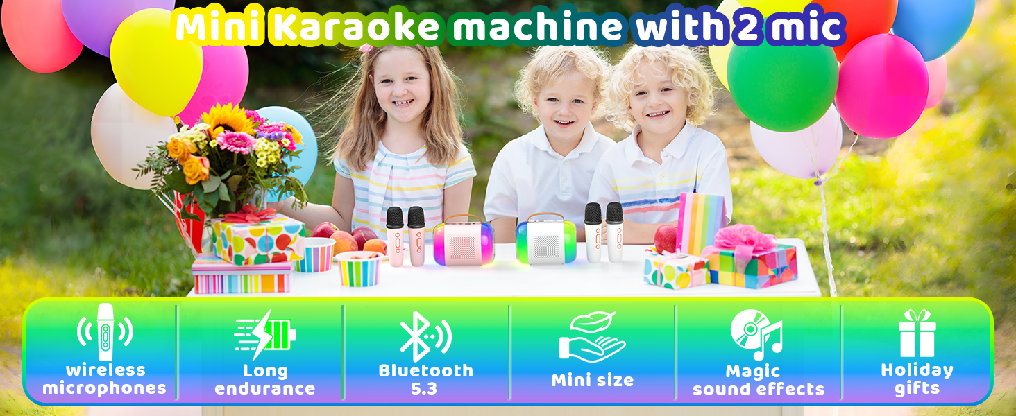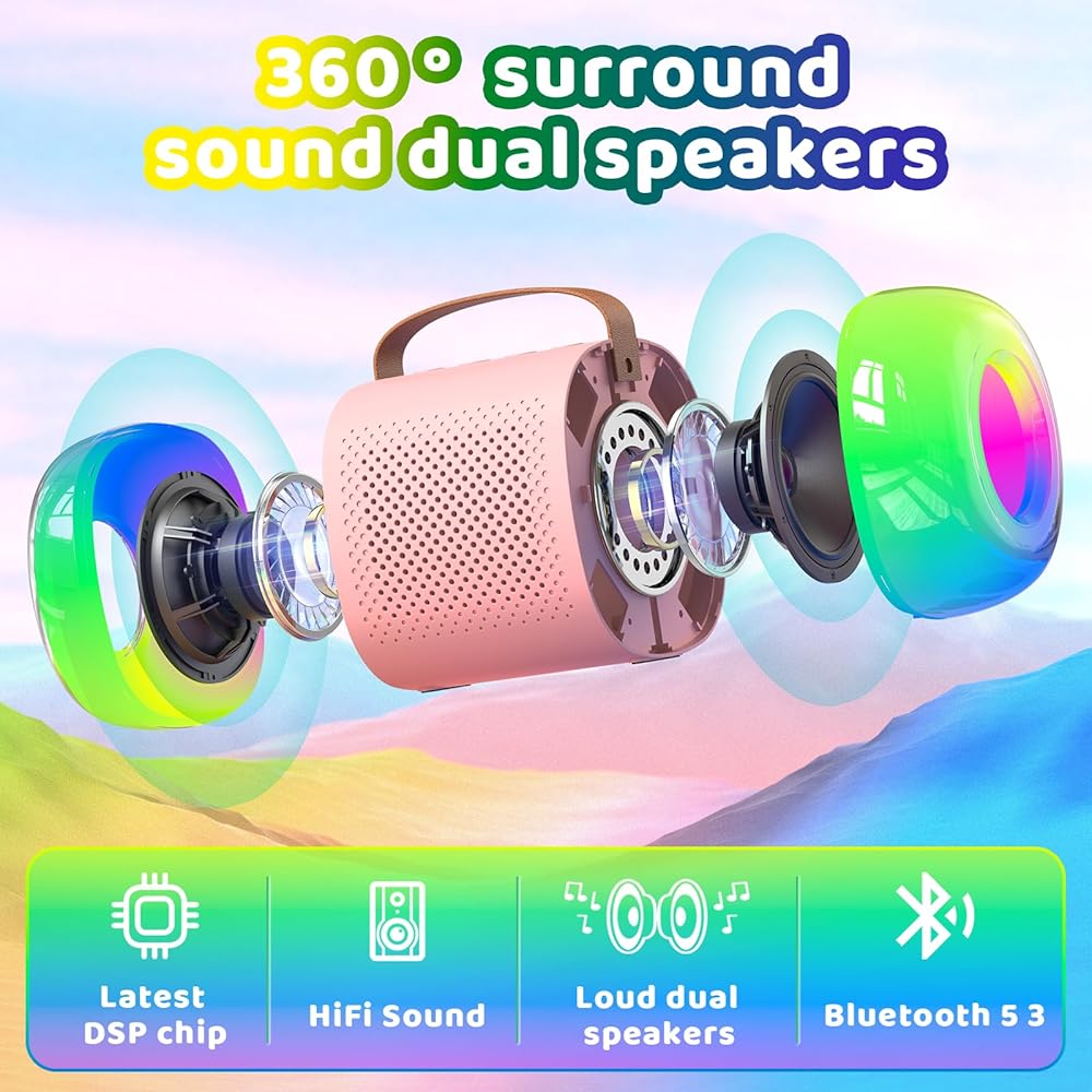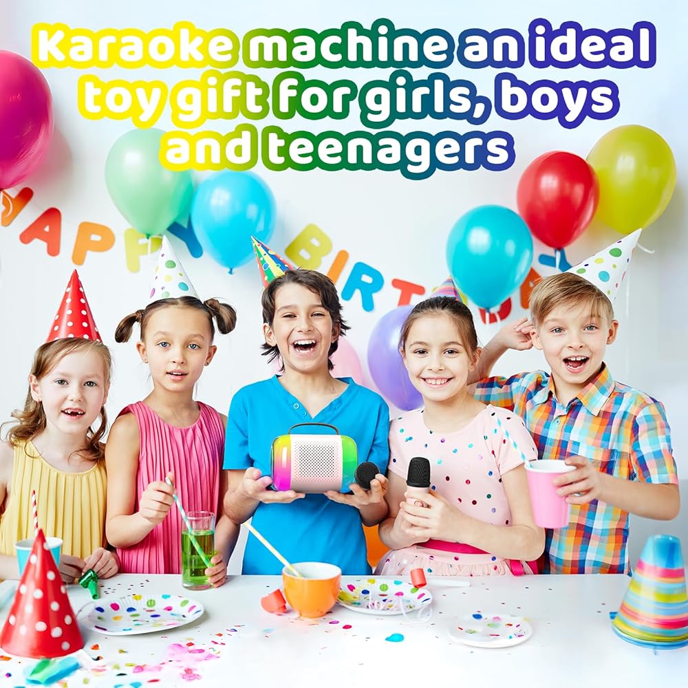 آلة كاريوكي صغيرة مع 2 ميكروفونات لاسلكية آلة كاريوكي صغيرة للأطفال هدايا عيد ميلاد مكبر صوت منزلي آلة كاريوكي مع بلوتوث للفتيات والأولاد 4، 5، 6، 7، 8 سنوات فما فوق، طفل صغير في سن المراهقة، وردي