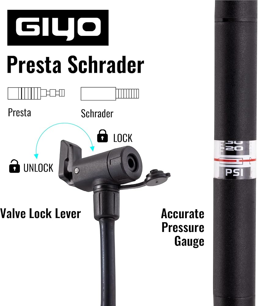 حجم ضخ عالٍ - تحتاج المضخات الأرضية الصغيرة إلى التعامل مع مجموعة واسعة من الضغوط وأنواع الإطارات - توفر مضخات إطارات الدراجة GIYO الخاصة بنا حجمًا كبيرًا من الهواء بسرعة للتعامل مع كل شيء بدءًا من الإطارات الدهنية وحتى دراجات الطريق.
