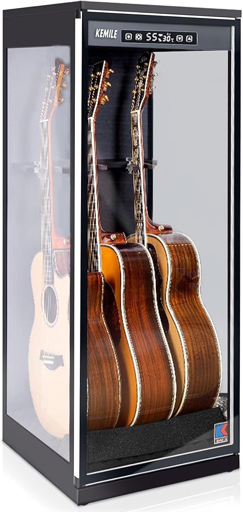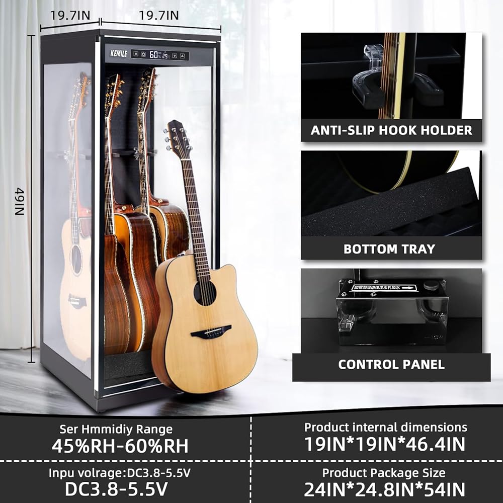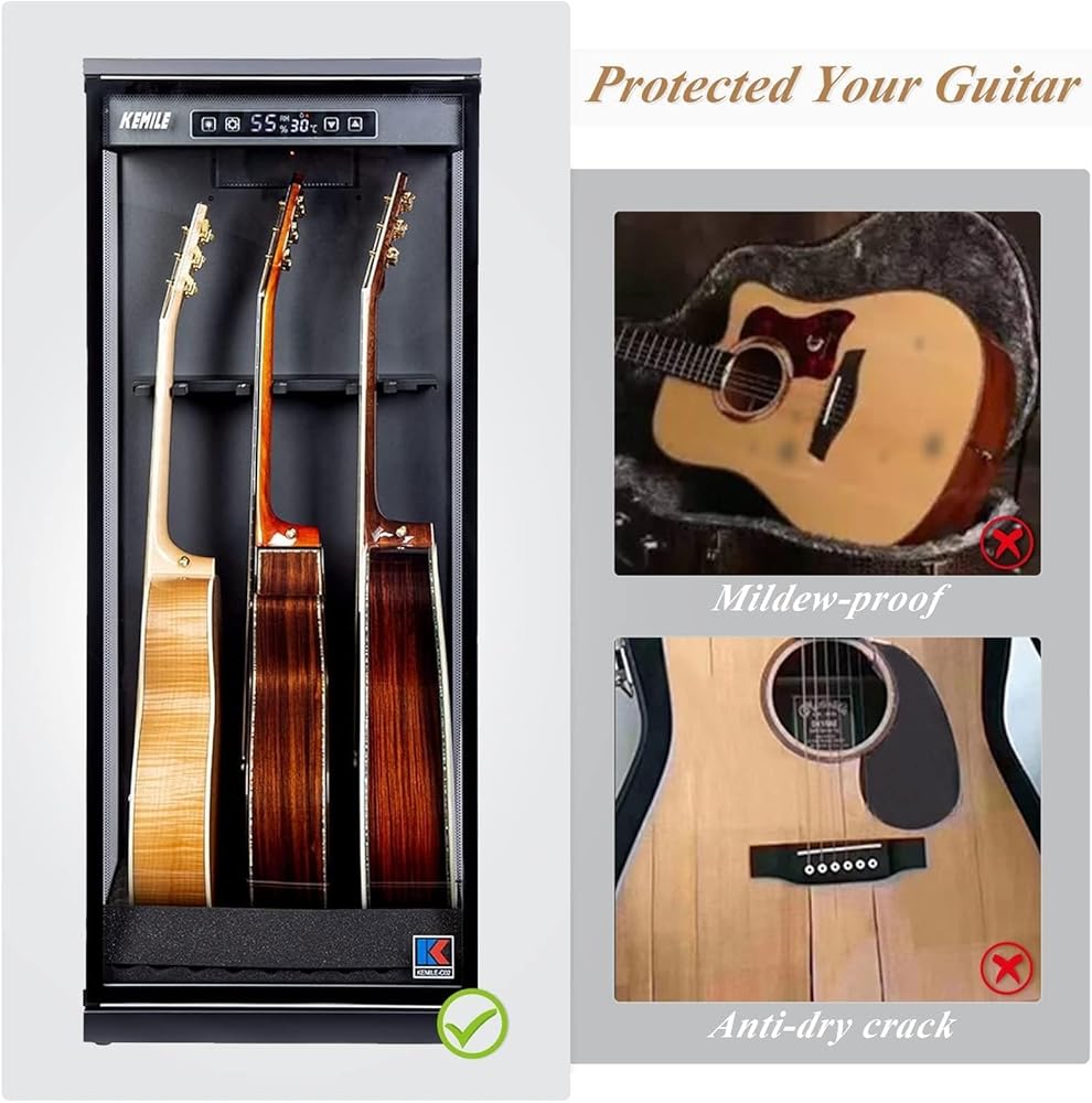 خزانة ترطيب وترطيب الجيتار متعددة الوظائف، والتي يمكن استخدامها لجمع وصيانة الجيتارات الكهربائية، أو الجيتار الصوتي أو القيثارة، الترطيب الذكي وإزالة الرطوبة، رطوبة قابلة للتعديل، مناسبة جدًا للاستخدام المنزلي أو التجاري