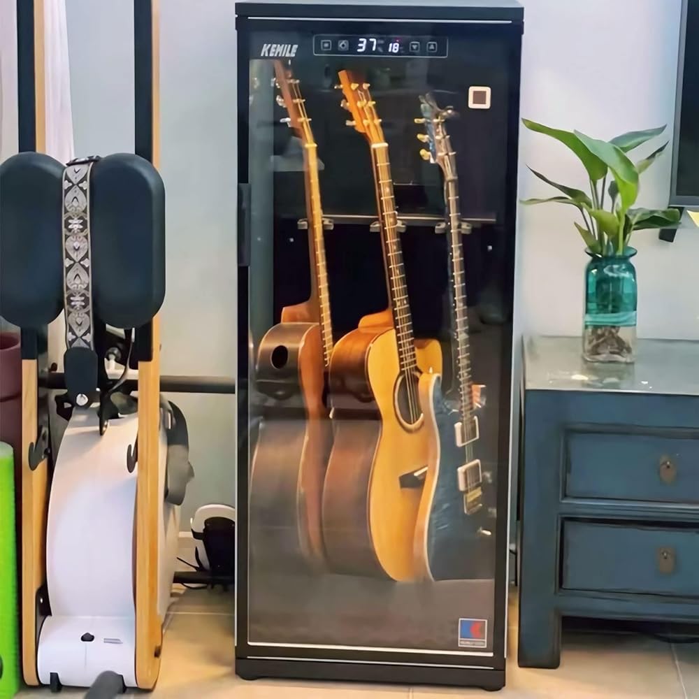 في بيئة رطبة جدًا أو جافة جدًا، يكون الجيتار عرضة للعفن والتورم والتشقق والخدوش، مما يؤدي إلى انخفاض جودة الصوت وحتى تلف الجيتار. إذا قمت بضبط نطاق الرطوبة في خزانة إزالة الرطوبة وترطيب الجيتار إلى 45% رطوبة نسبية - 60% رطوبة نسبية، فيمكن تجنب هذا الموقف