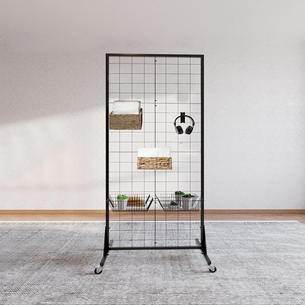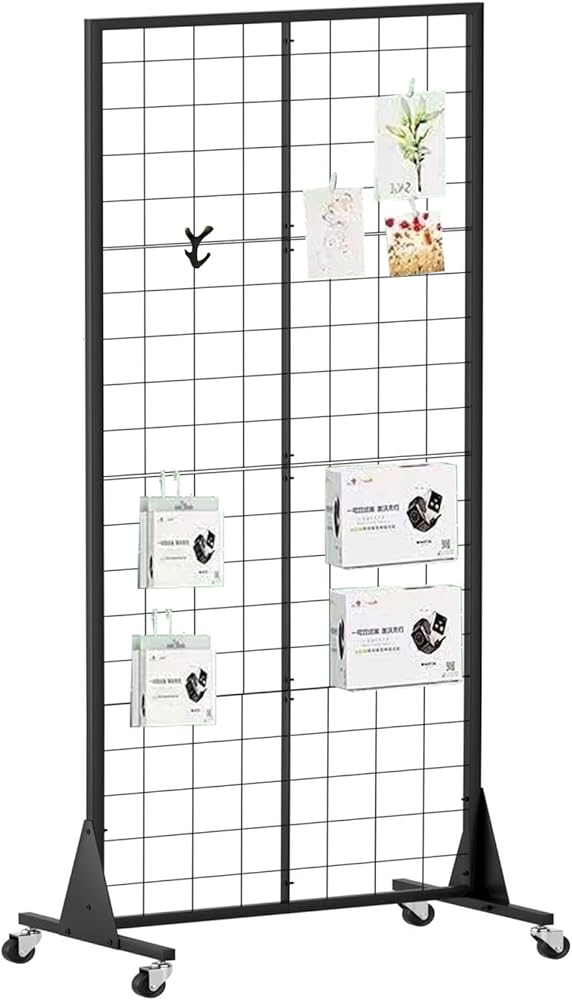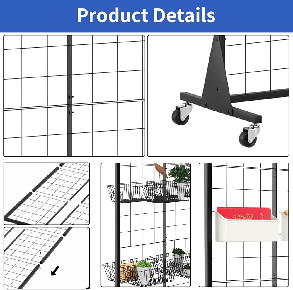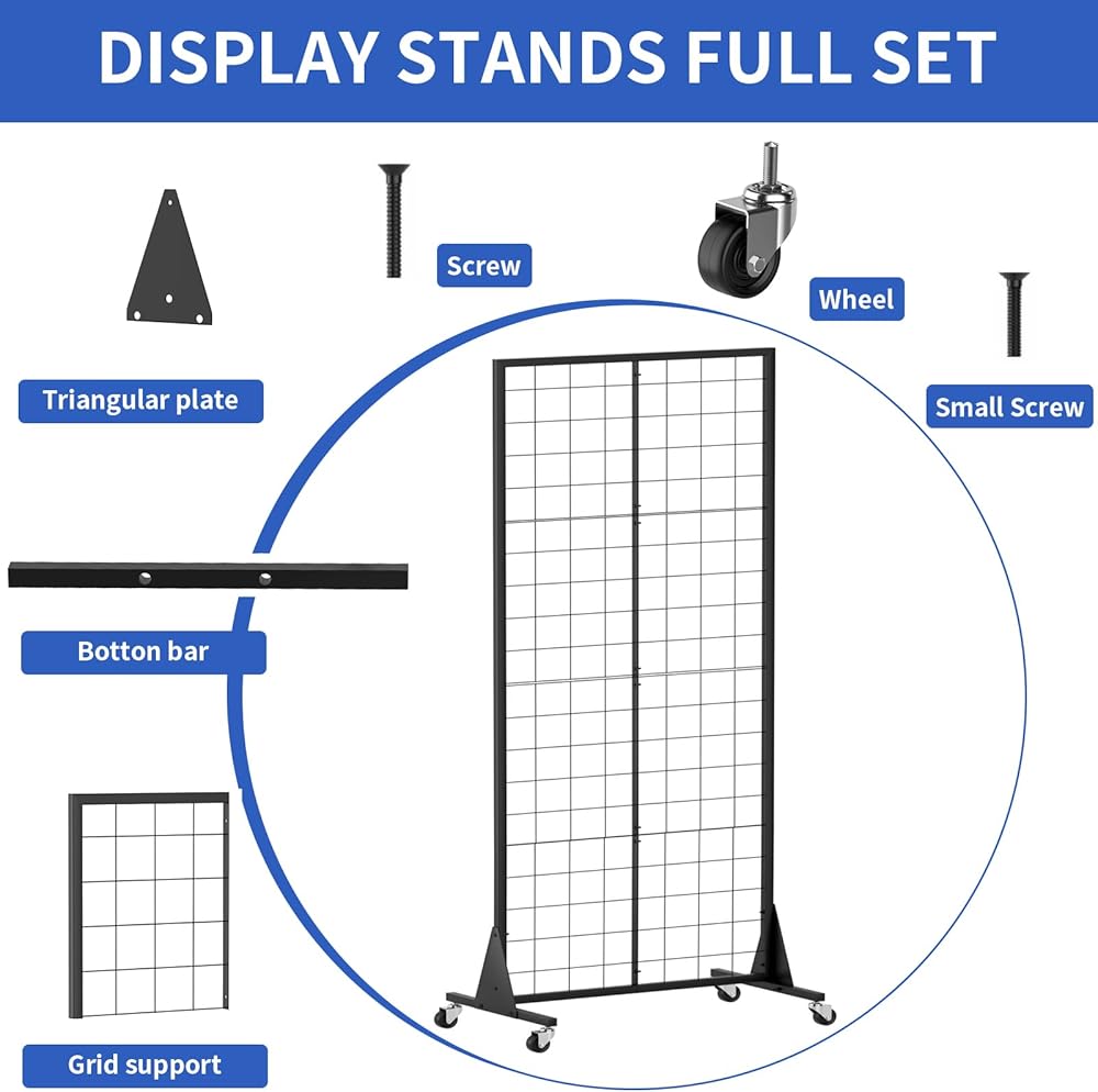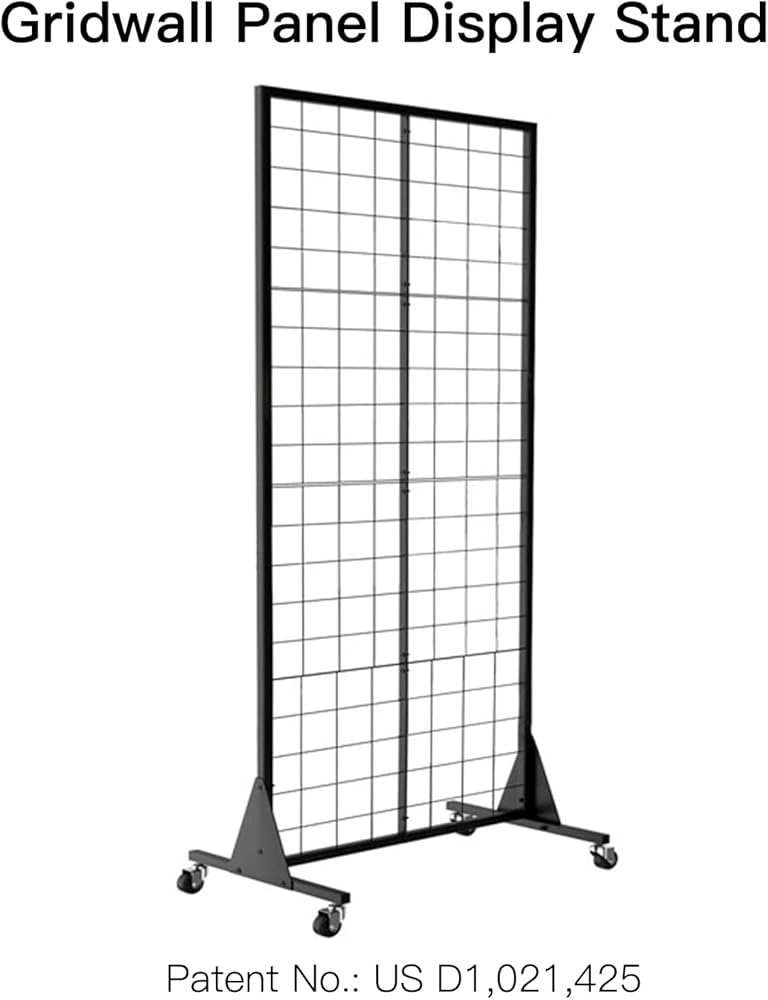 حامل عرض لوحة Gridwall، حامل أرضي عالي التحمل مقاس 2 × 5.5 بوصة مع جدار محيطي قابل للفصل، عجلة صامتة متحركة، سهل النقل، مثالي لمعارض البيع بالتجزئة والحرف