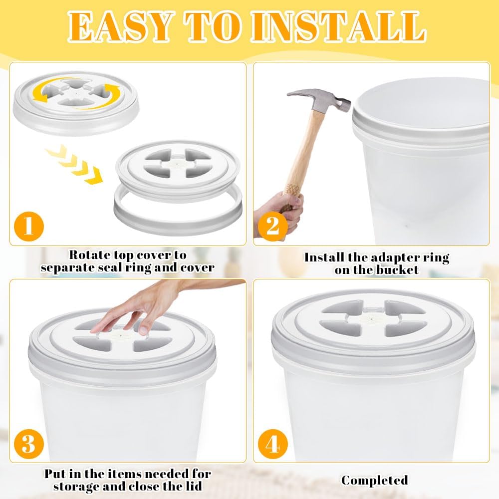تصميم رائع مختوم - تم تصميم أغطية مانعة للتسرب من البلاستيك لتفتح وتغلق عن طريق الدوران، مع حشية مطاطية لجعل الغطاء مناسبًا للدلو بشكل أقرب، مما يساعد على منع محتويات الدلو من التسرب.