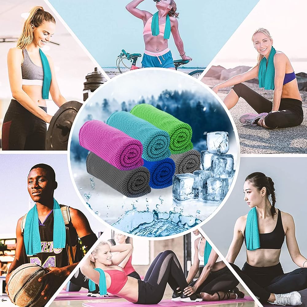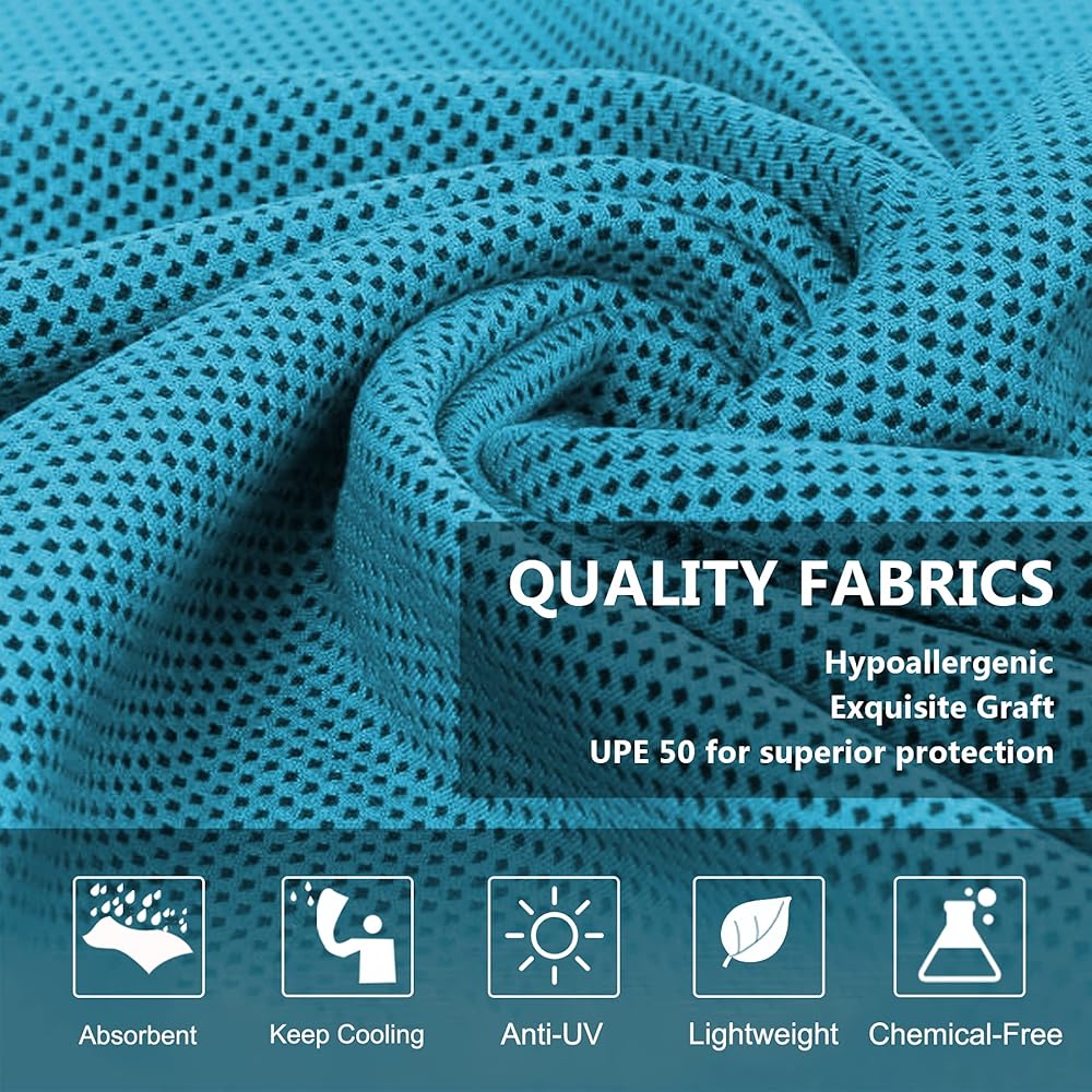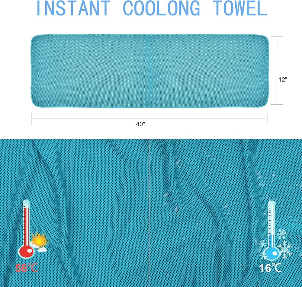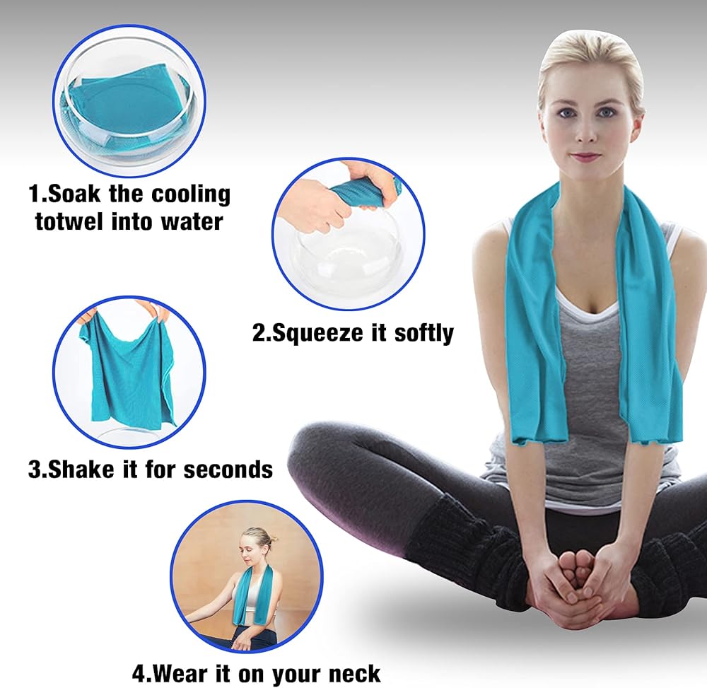 تبريد فوري وقابل لإعادة الاستخدام ---- منشفة التبريد هذه مصنوعة من مادة الألياف الدقيقة شديدة التبخر وقابلة للتنفس مما يجعلك من السهل البقاء باردًا ومرتاحًا مع مناشف التبريد بينما تقوم ببساطة بنقعها وعصرها وإغلاقها. إضافة الماء البارد بشكل متكرر لتحقيق التبريد المستمر.