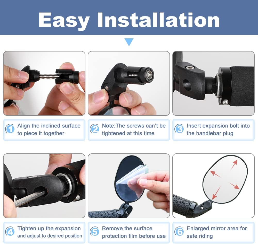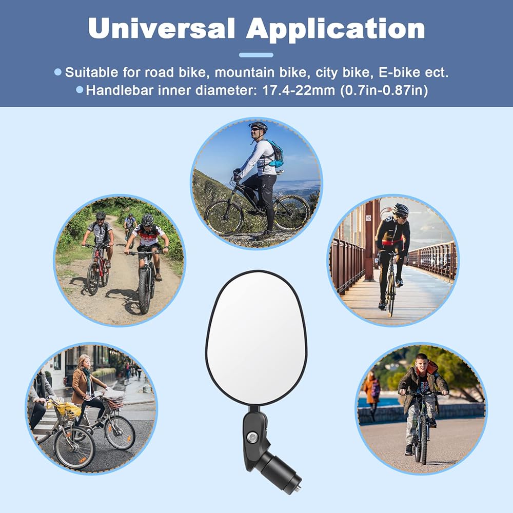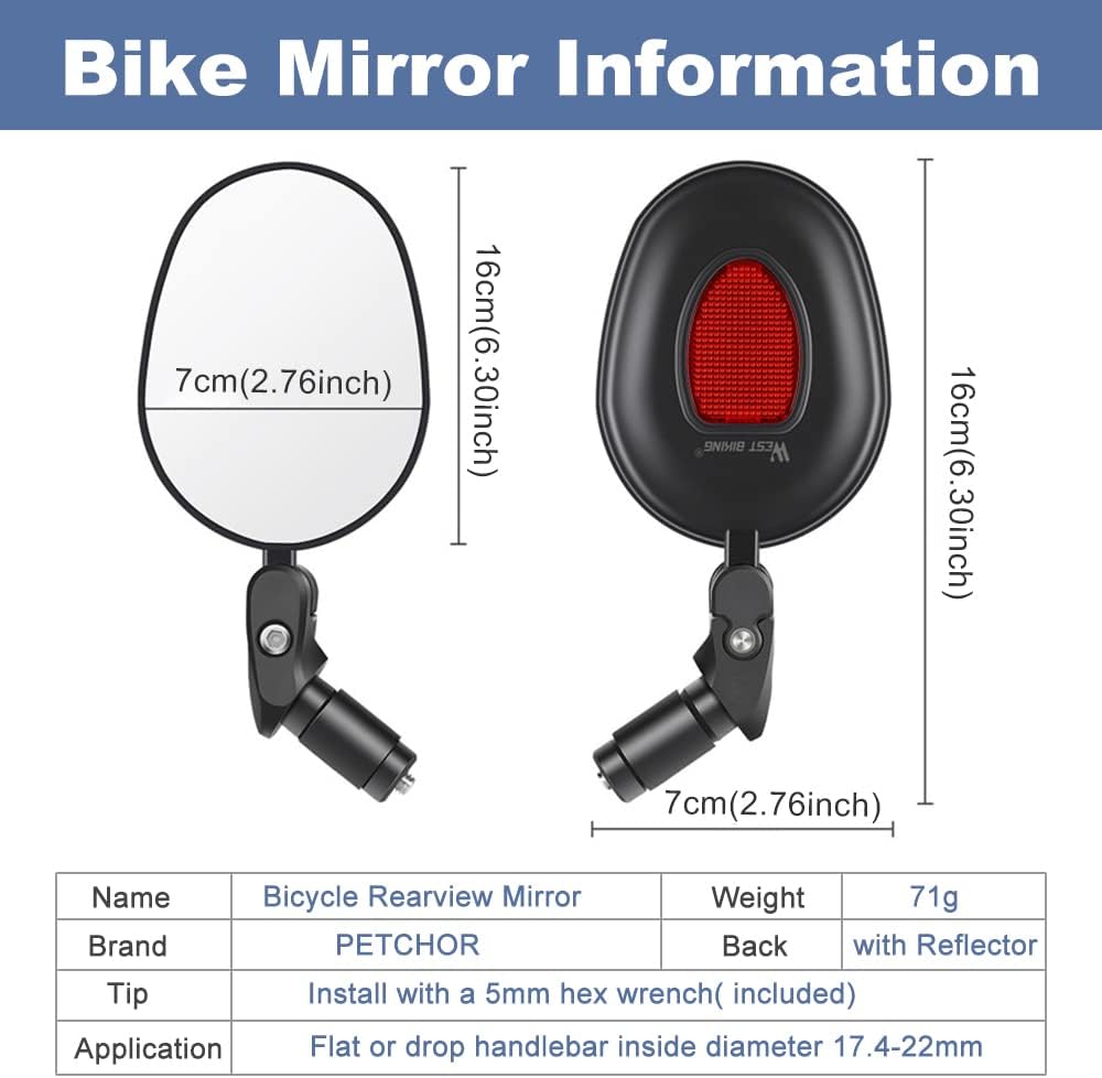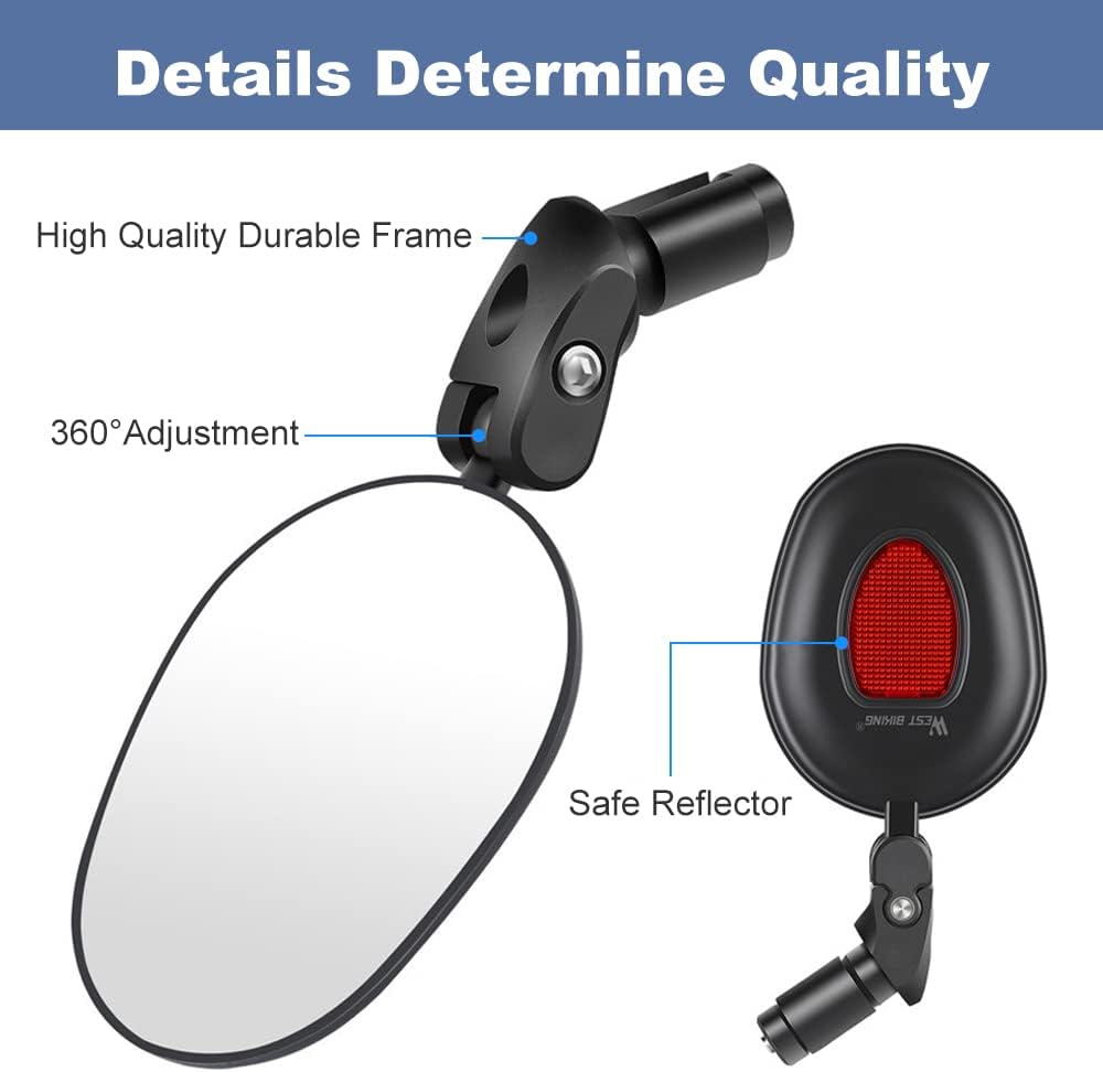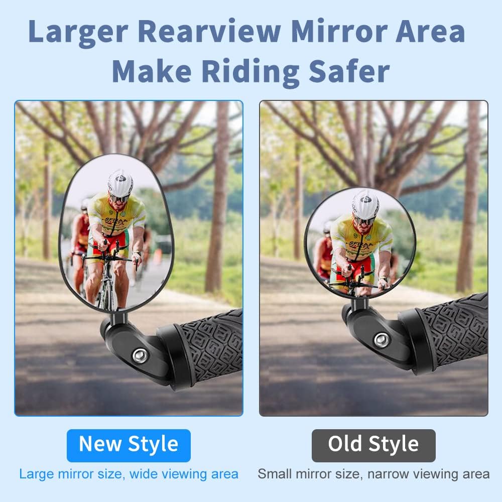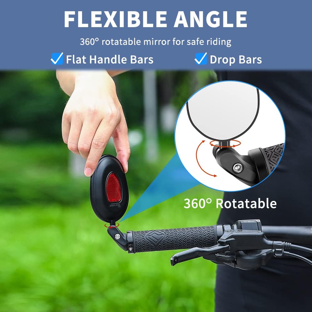 【تصميم السلامة】: مرآة الرؤية الخلفية للدراجة مجهزة بمرايا عاكسة، مما يوفر رؤية واسعة وواضحة. عندما تركب في الليل، ستلاحظك المركبات وراكبي الدراجات القادمة. وفي الوقت نفسه، يبلغ حجم مرآة الرؤية الخلفية هذه 6.3 بوصة × 2.76 بوصة، مما يسمح لك برؤية المزيد من الخلف مقارنة بمرايا الرؤية الخلفية الأخرى، مما يحسن سلامة ركوب الدراجات.