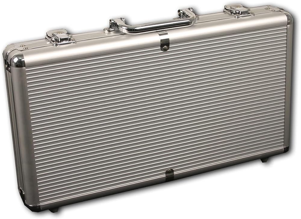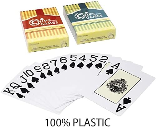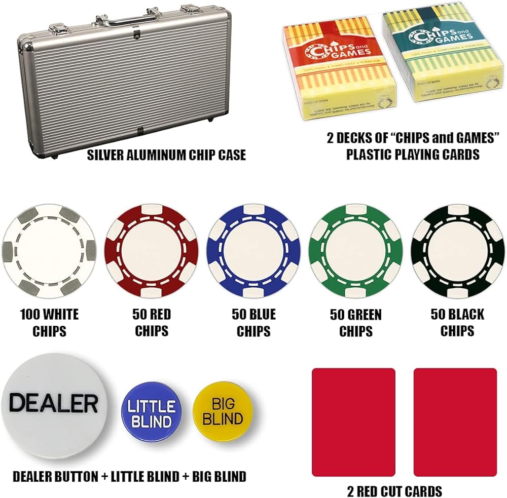 - تشتمل على علبة ألومنيوم متينة، وطابقين من بطاقات اللعب البلاستيكية عالية الجودة، وبطاقتين مقطوعتين، وأزرار للموزع والأزرار العمياء