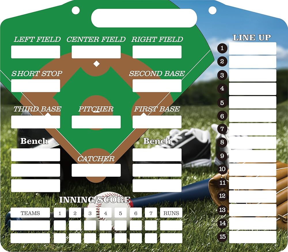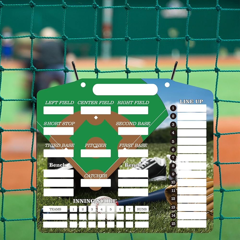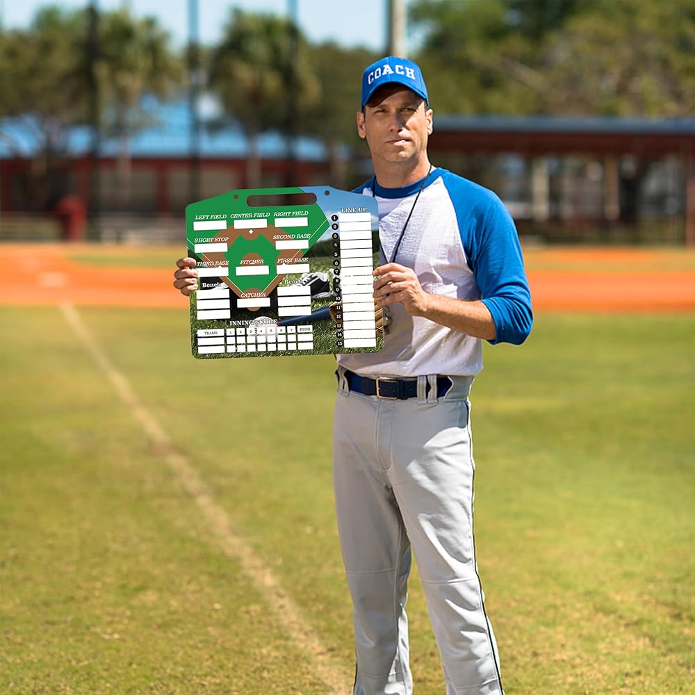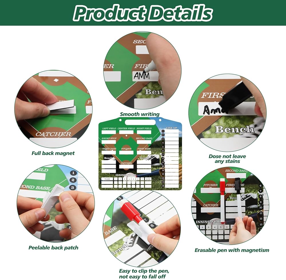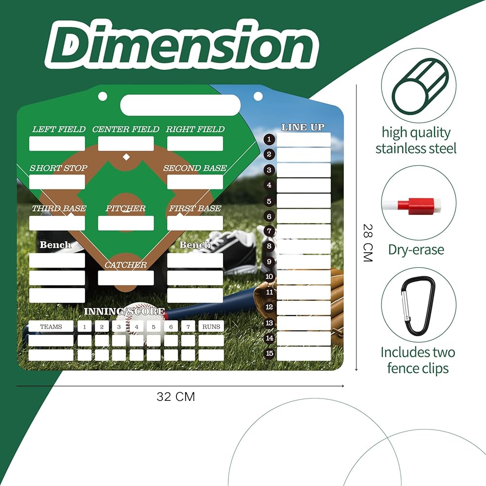• ⚾ اللوح مصنوع من مادة PVC الممتازة، وهو متين ومقاوم للماء، وقادر على تحمل التآكل والتمزق اليومي. تضمن بطاقات التشكيلة المغناطيسية رؤية واضحة لمعلومات اللاعب، مما يعزز التنفيذ الاستراتيجي.