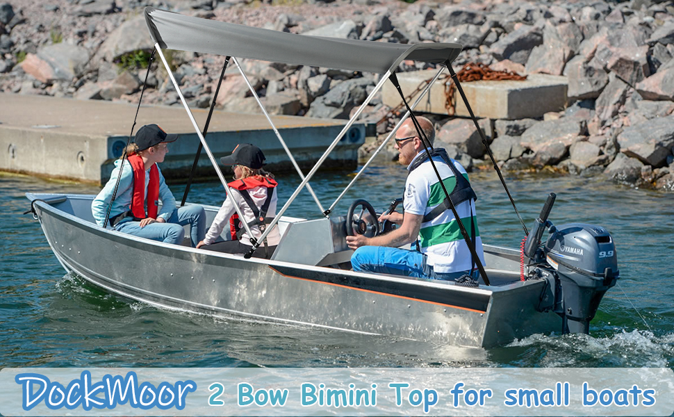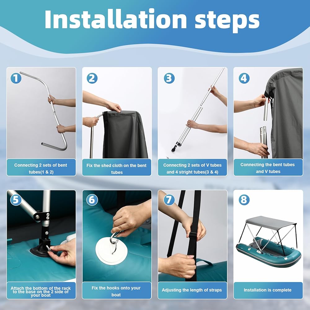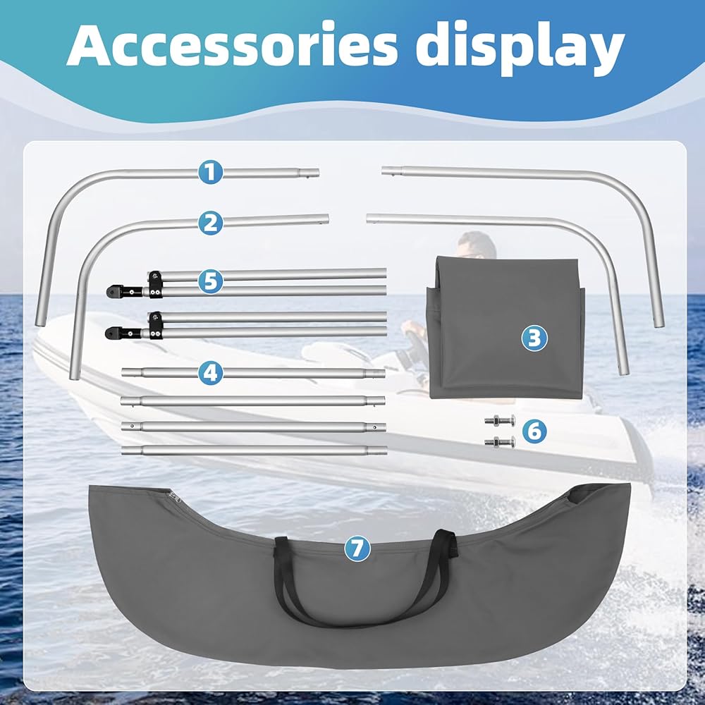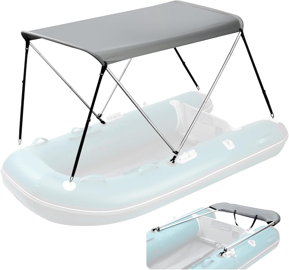 قمة بيميني للقارب القابل للنفخ جون بوت من الألومنيوم (العرض 3.3-4.6 قدم)، 2 ملحقات مظلة ظل الشمس مع أحذية تخزين 63 بوصة طول × 39 بوصة - 55 بوصة عرض × 43.3 بوصة ارتفاع