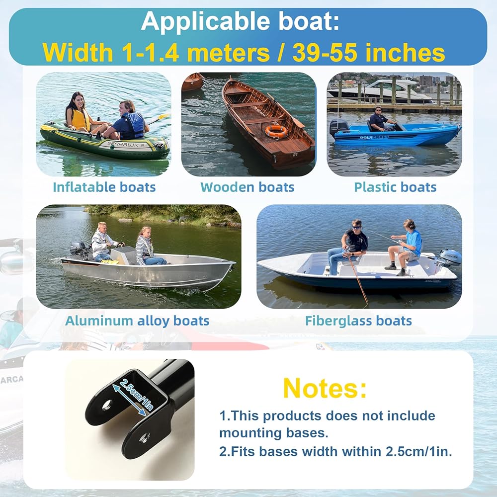 الحجم: 63 بوصة طول * 44.5 بوصة عرض * 43.3 بوصة ارتفاع. عرض تركيب مرن، مناسب لعرض القوارب 39-55 بوصة / 1-1.4 متر، مثل قارب جون الصغير، قارب من سبائك الألومنيوم، قارب قابل للنفخ، قارب من الألياف الزجاجية، قارب خشبي، قارب بلاستيكي، إلخ .