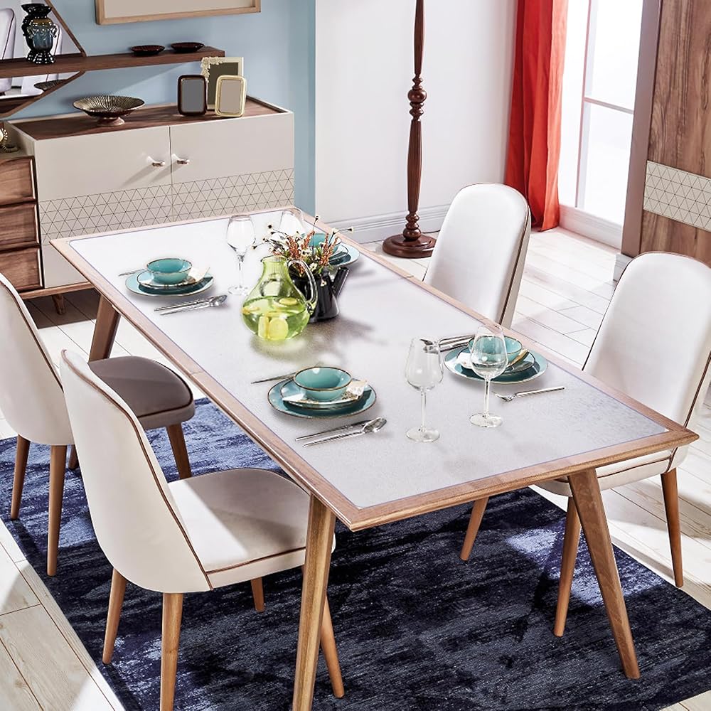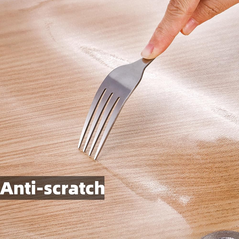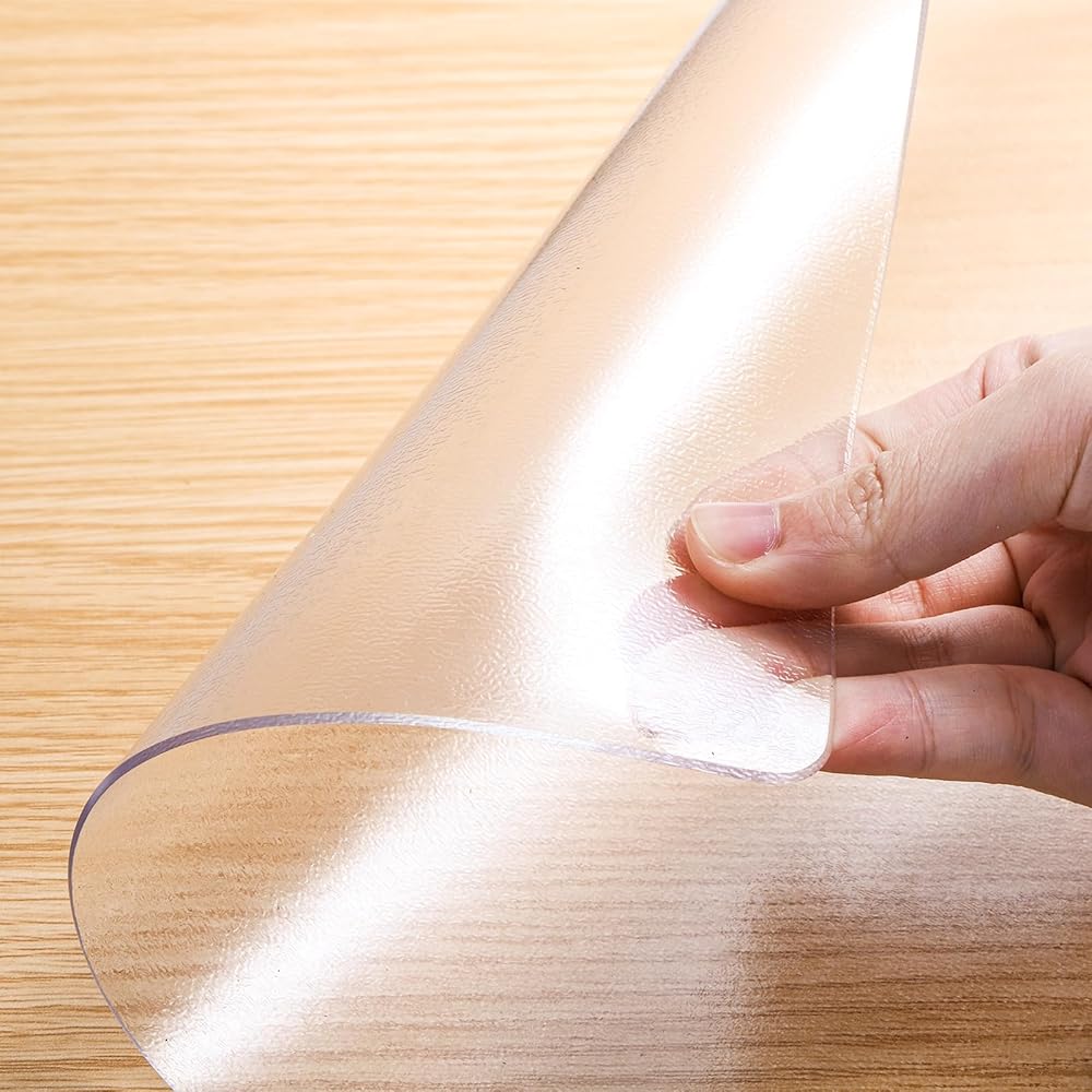 مادة آمنة: واقي غطاء الطاولة الشفاف Peohud مصنوع من مادة PVC عالية الجودة، خالية من البيسفينول A، بدون رائحة بلاستيكية، مقاوم للحرارة، مقاوم للماء والزيوت. يحمي أسطح الأثاث من الخدوش والسحجات والبقع.