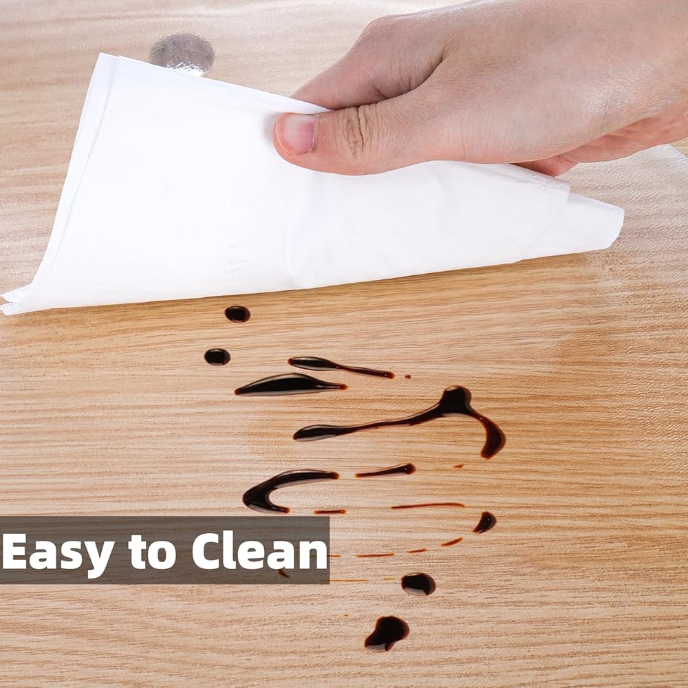 لا توجد فقاعات هواء: على عكس سجادات الطاولة الشفافة تمامًا، لن تترك سجادات الطاولة المصنفرة فقاعات الهواء على أسطح الطاولة الناعمة مثل الزجاج والرخام والمزيد. استخدمه مع الجانب الأملس لأعلى والجانب المتجمد لأسفل.
