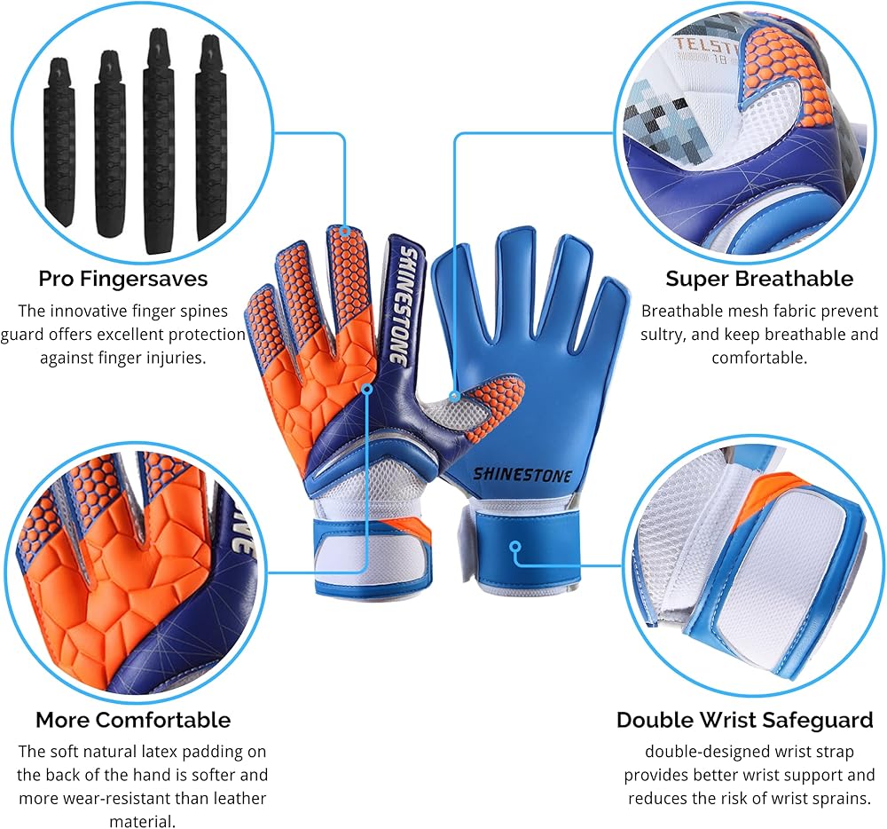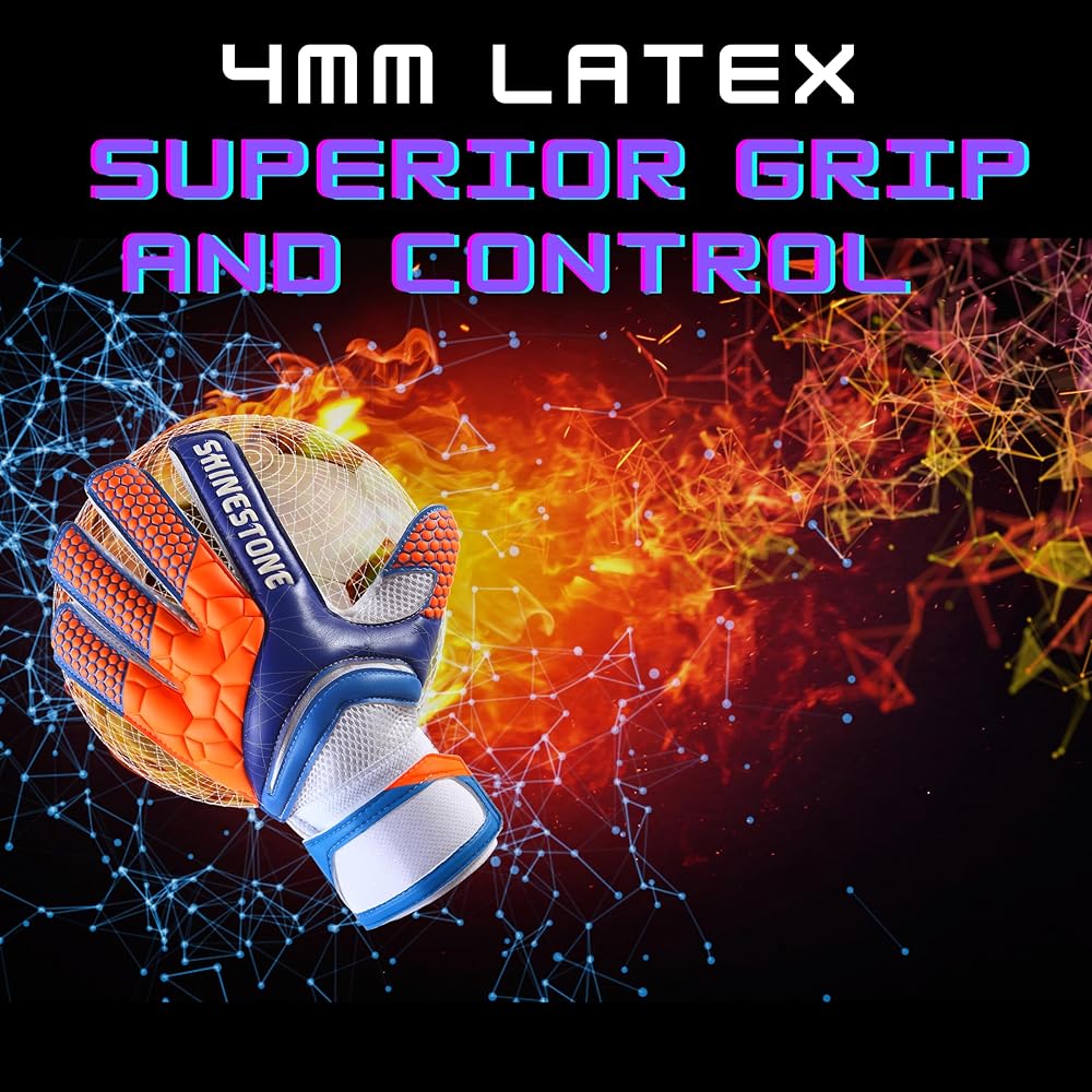 أشواك الأصابع المتقدمة للحماية: استمتع بحماية الأصابع القصوى مع قفازات حارس المرمى الخاصة بنا. تحمي أشواك الأصابع المبتكرة من الإصابات المفرطة أثناء المنافسة الشديدة أو التدريب. توفر رغوة اللاتكس المبطنة بسمك 4 مم توسيدًا إضافيًا وحماية لراحة اليد.