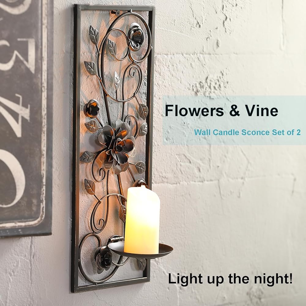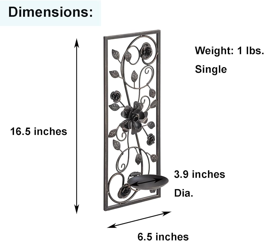 ♣ شمعدانات شموع الحائط - يأتي حامل شموع الحائط المعدني بتصميم كلاسيكي من الزهور السوداء، مع دوامات من الكرمة تصور شكل القلوب في المنتصف، وزهرة فلور دي ليز في الأعلى تجعل شمعة الحائط هذه أكثر توهجًا. رائع. الشموع هي خبراء حقيقيون عندما يتعلق الأمر بخلق جو مثالي. امنح شموعك الاحترام الذي تستحقه مع شمعدانات الحائط المزخرفة هذه!