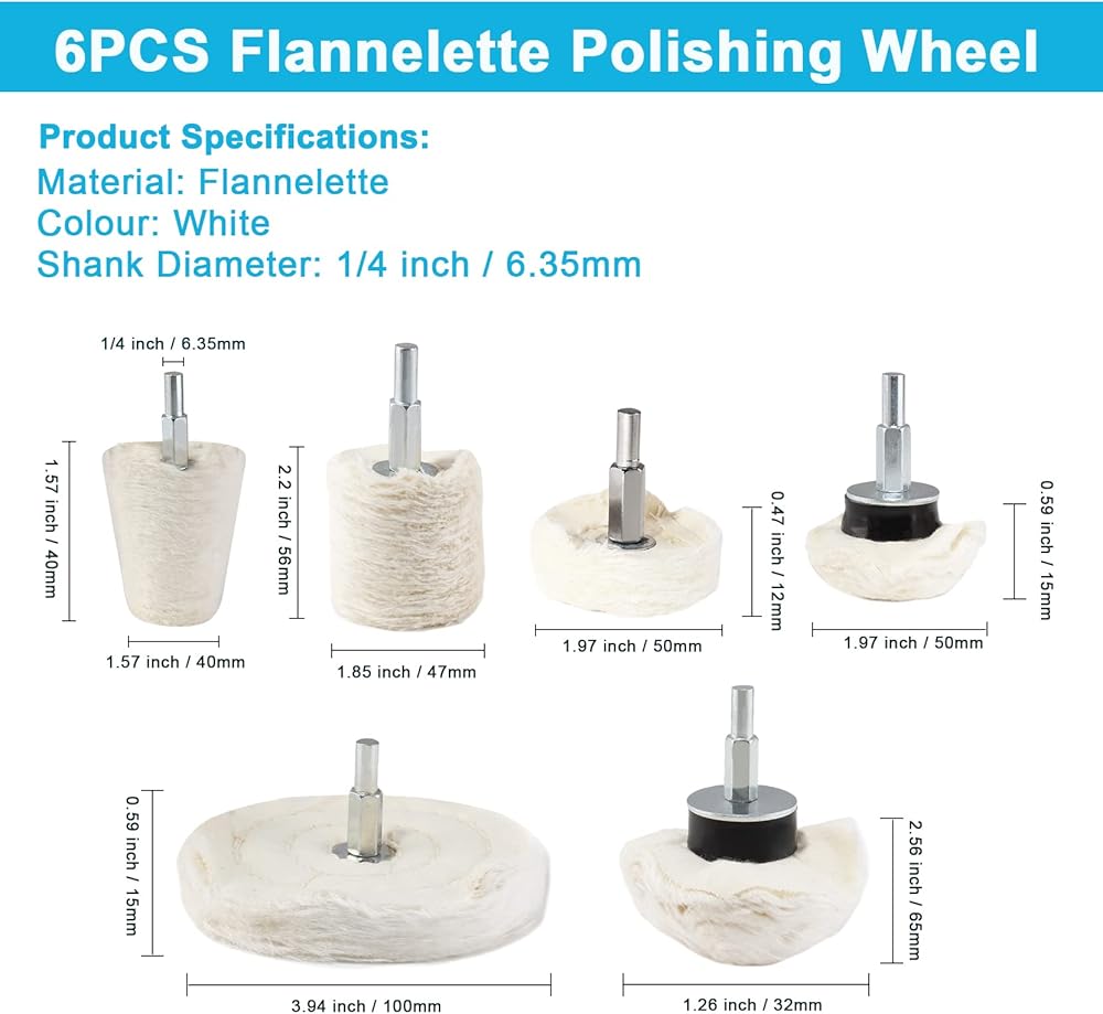 A set contains 6 flannelette buffing kit, which is very suitable for woodworking, decorators, DIY enthusiasts, and craftsmen to buy and use.