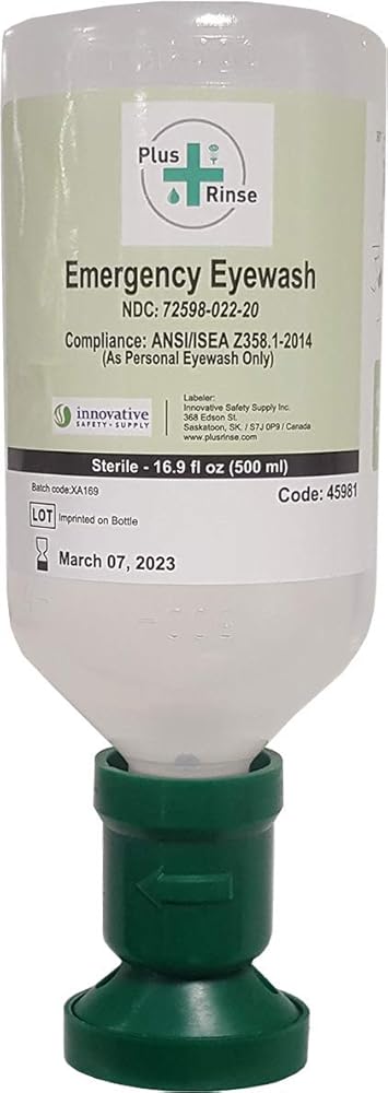 Plus Rinse Single Open Mount Eyewash Station. Comes with wall mount and one 16.9 oz. Sterile Saline bottle with an ergonomic eyecup. 3 year expiration on solution. Most economical station on the market. 5 minute rinse time for one eye.