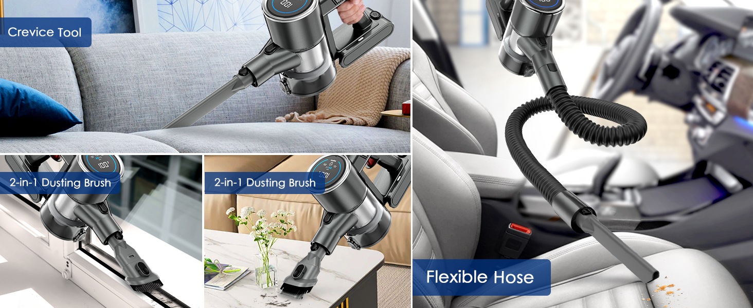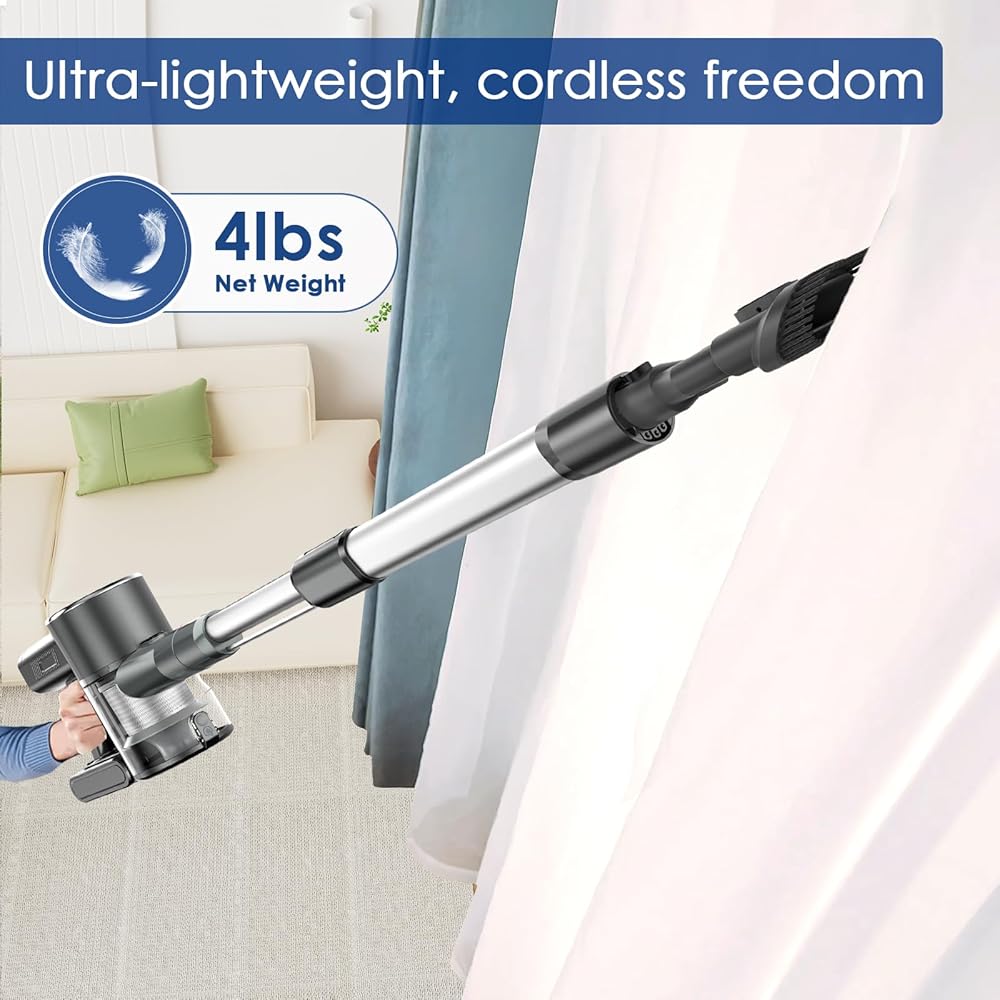 ♥ بطارية محدثة عالية الأداء * 2: تحتوي المكنسة الكهربائية العصا اللاسلكية على بطاريتين قابلتين للإزالة. نحن نقدم ما يصل إلى 100 دقيقة من وقت التشغيل في الوضع القياسي (بطاريتان = 100 دقيقة من وقت التشغيل). يمكنك استبدال البطارية المستنفدة بسرعة بأخرى مشحونة بالكامل ومتابعة التنظيف دون انتظار وقت الشحن. بطاريتين قابلتين للإزالة تجعلها مثالية للمنازل الكبيرة أو جلسات التنظيف الممتدة، مما يضمن أن المكنسة الكهربائية جاهزة دائمًا.