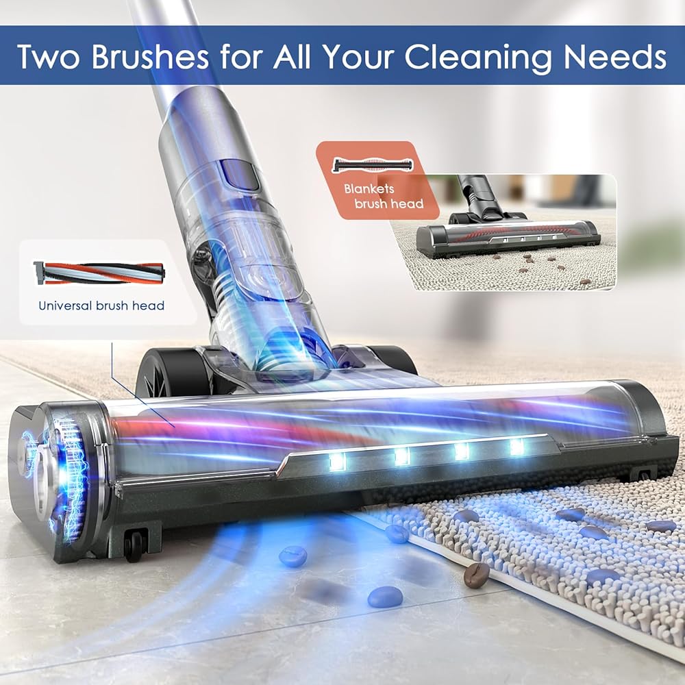 ♥ شفط قوي 33 كيلو باسكال ومحرك بدون فرش بقدرة 450 وات: توفر السجادة والأرضية المكنسة الكهربائية شفطًا قويًا يصل إلى 33000 باسكال في الوضع الأقصى، مما يجعل من السهل التقاط الحطام والغبار والفتات وشعر الحيوانات الأليفة وغيرها من الحطام على الفور. بفضل محركها بدون فرش، تولد المكنسة الكهربائية اللاسلكية حرارة وضوضاء أقل (63 ديسيبل)، مما يجعلها أكثر كفاءة في استخدام الطاقة وتدوم لفترة أطول من المحركات التقليدية ذات الفرشاة.