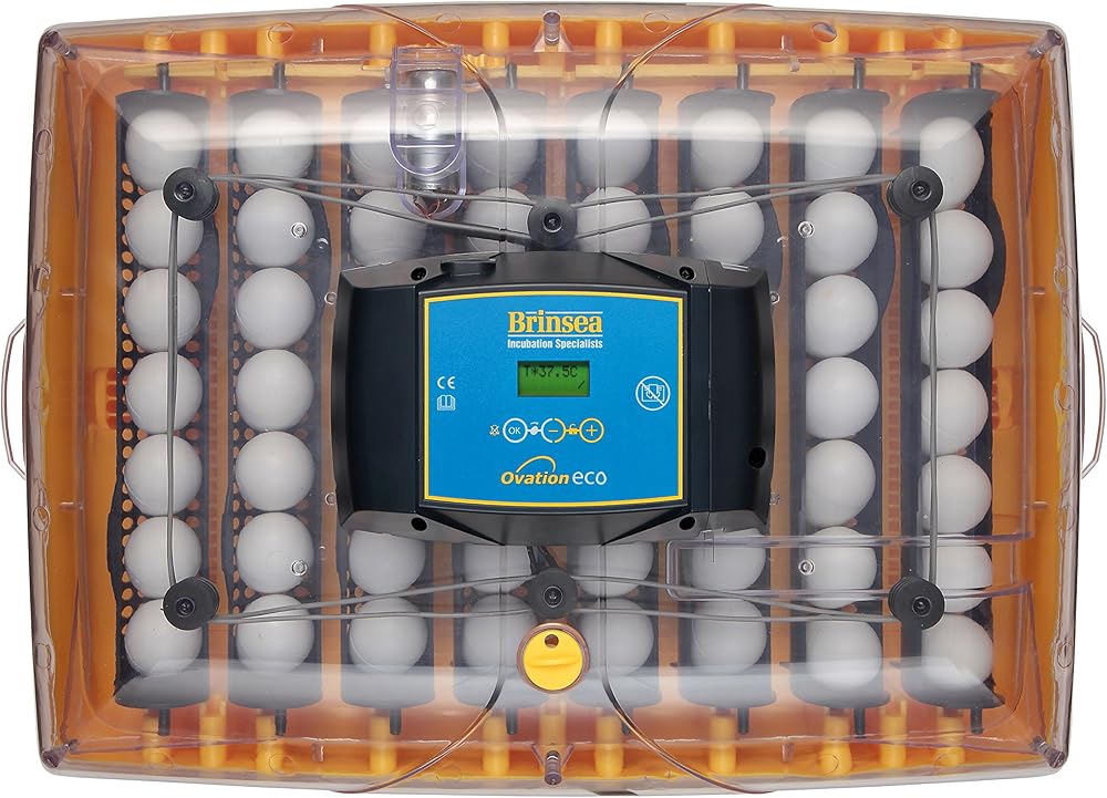 Building on years of incubator design, the all new Ovation 28 Eco fully digital egg incubator incorporates Brinsea's new "Induced Dual Airflow" system which achieves higher levels of temperature consistency for optimum hatching conditions. Quality incubator for the discerning breeder, the Ovation 28 Eco has the main features needed for a successful hatch with the convenience of automatic turning, digital control, good visibility of the eggs and handling up to goose size. A simple and highly accurate menu driven digital control system gives digital display of temperature, automatic temperature control in °F or °C fully factory calibrated, high and low incubator and room temperature alarms, programmable automatic egg turning, fan assisted air flow with Induced Dual Airflow system and ventilation control. Humidity is provided by water trays with easy water top-up with level indicator. Like all Brinsea incubators the Ovation 28 Eco has a robust and easy to clean plastic cabinet to provide the optimum environment for hatching. 28 hen eggs capacity with standard egg carriers provided but suitable for a wide range of egg sizes -optional large egg carriers available. 3-year warranty.