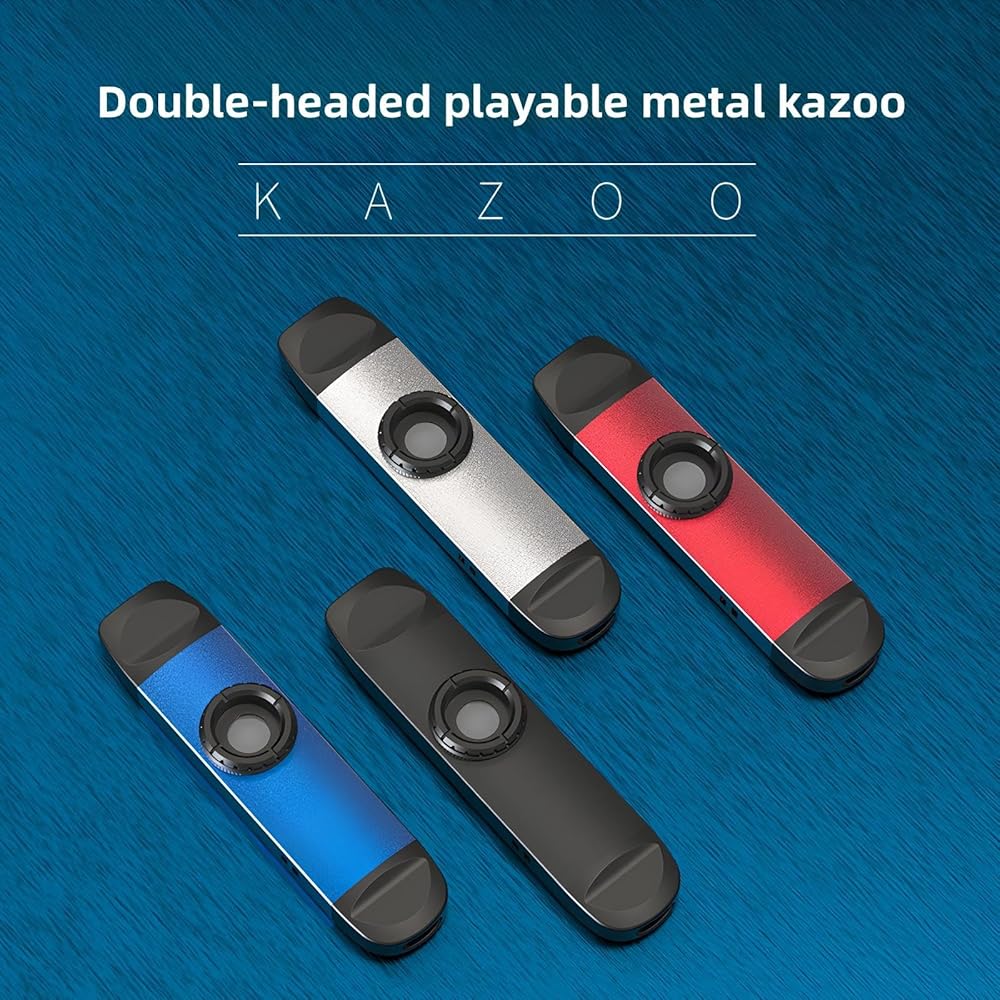 🎸UNIQUE AND INNOVATIVE DESIGN - The kazoo mouthpiece is designed with food-grade silicone teeth and grooves that are not easily dislodged when playing, and both ends can be used for playing. At the same time, the metal kazoo is lightweight and portable, and the sound is full and clear, suitable for playing a variety of musical styles.