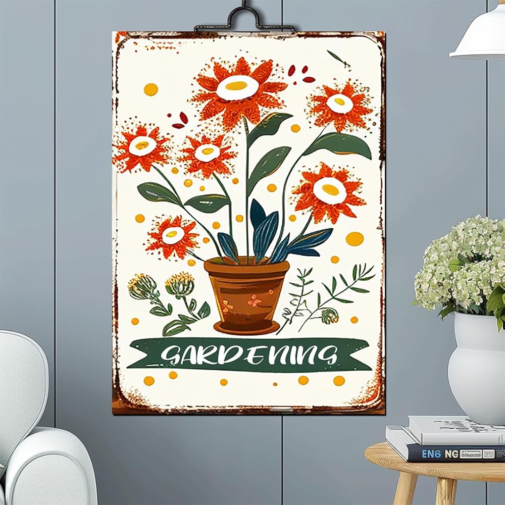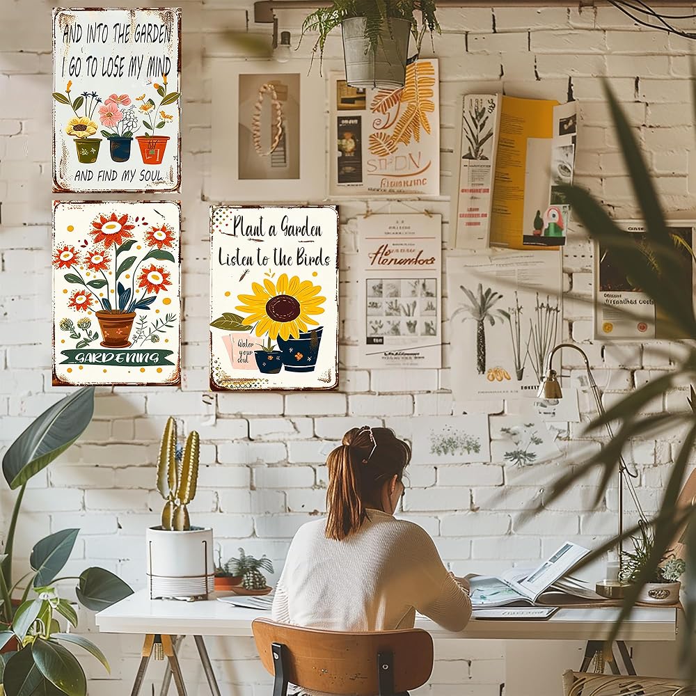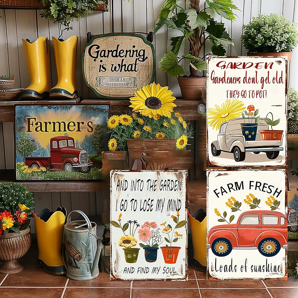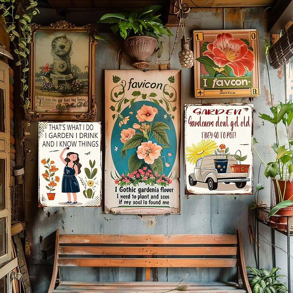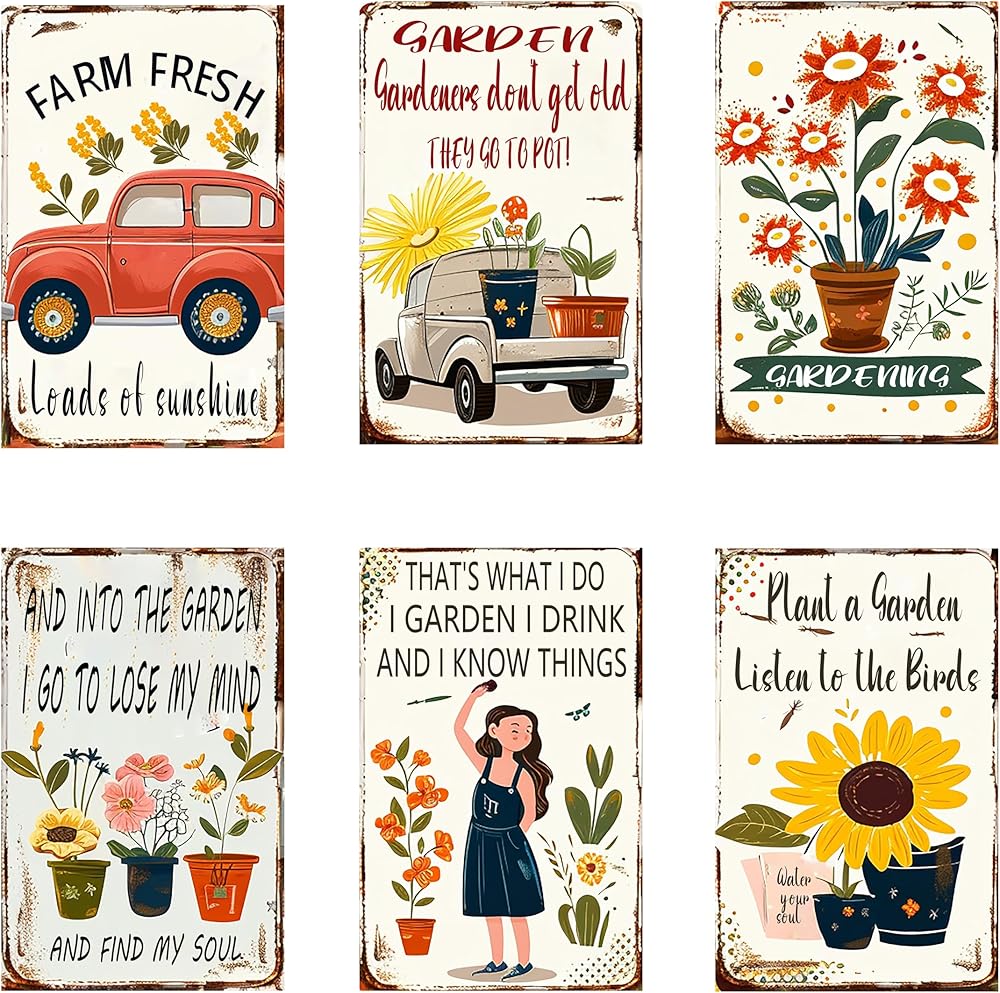 مجموعة عتيقة من البستنة مقاس 8 × 12 بوصة مكونة من 6 علامات معدنية للفناء والقصدير وعلامات للحديقة وديكورات منزلية للحفلات وملصقات من الألومنيوم لديكور جدران المنزل