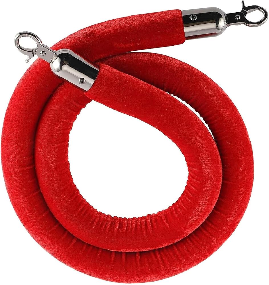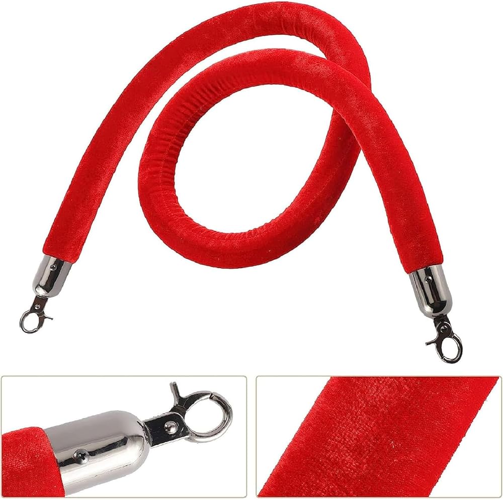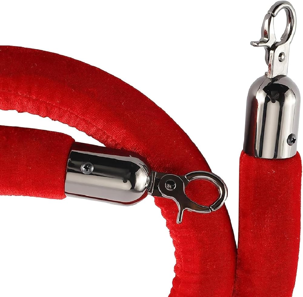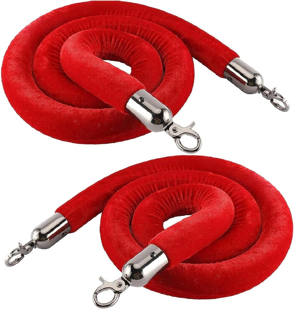 Red rope safety barriers with stainless steel silver hooks fit most stanchion posts