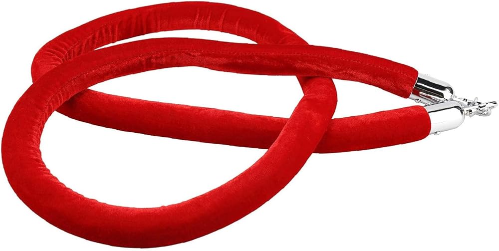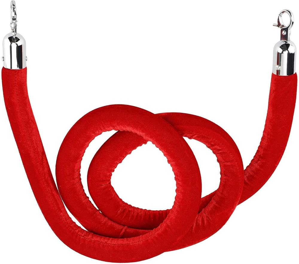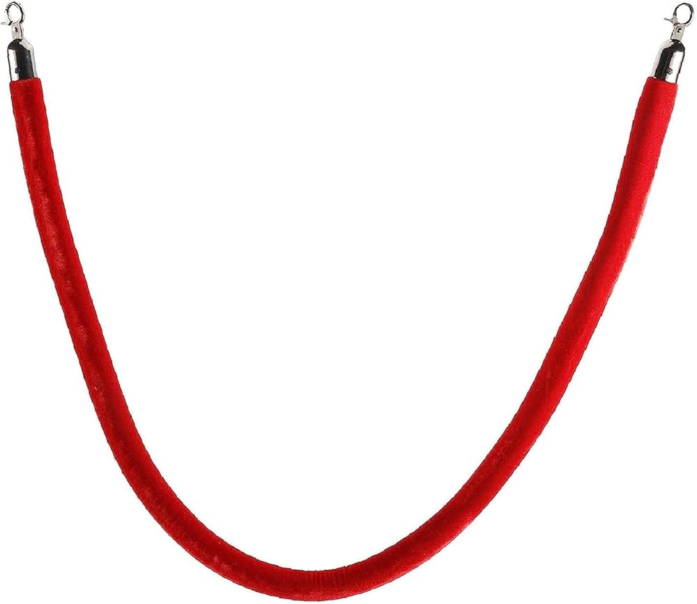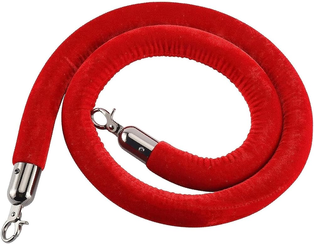 Red rope safety barriers with stainless steel silver hooks fit most stanchion posts