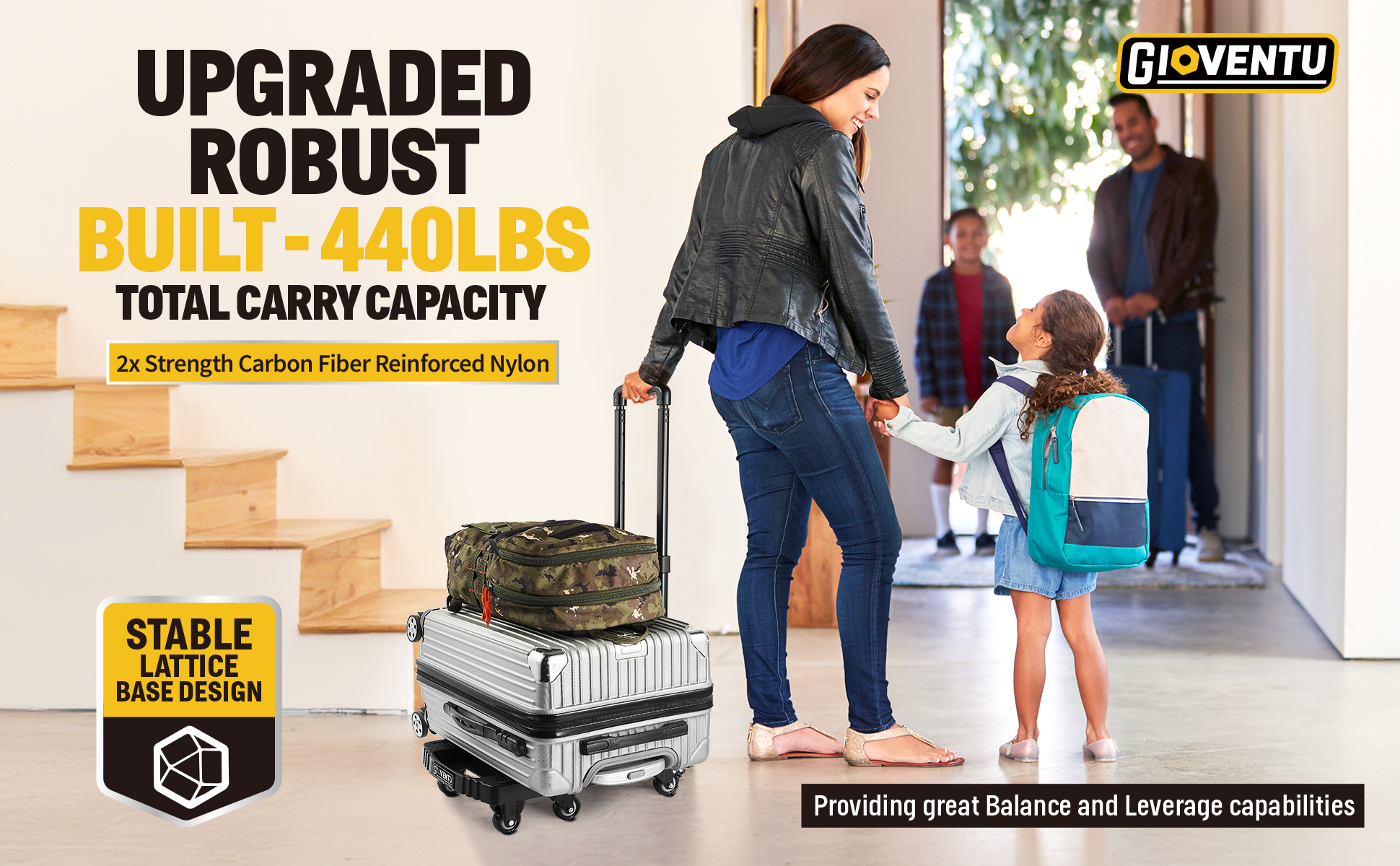 • [قاعدة قوية من البولي بروبيلين]: مصممة بقاعدة شبكية معززة وبنية مرنة من الألومنيوم والبولي بروبيلين، توفر عربة الدمى هذه دعمًا فائقًا للأحمال التي يصل وزنها إلى 440 رطلاً، مما يضمن الاستقرار والحد الأدنى من الاضطراب أثناء النقل.