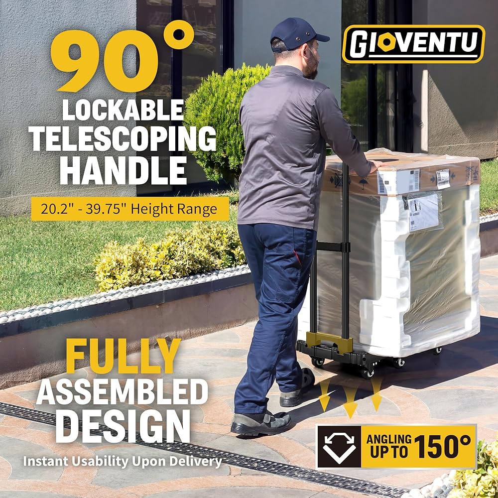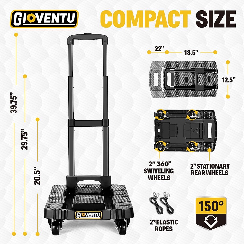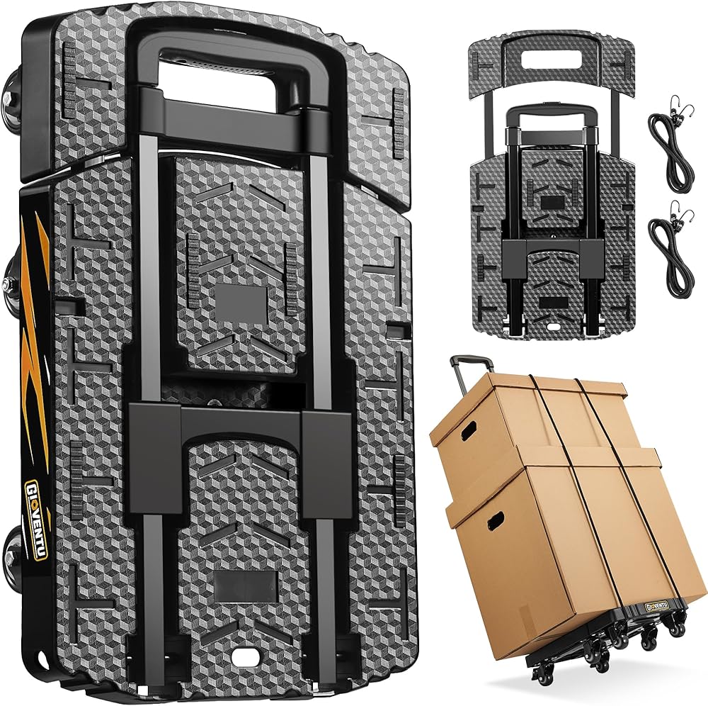 شاحنة يدوية دوللي للتحرك (440 رطل)، عربة دوللي قابلة للطي مع 6 عجلات من المطاط اللدن حراريًا ومقبض قابل للقفل 90 درجة، شاحنة منصة عربة أمتعة محمولة للسفر والاستخدام المكتبي وما إلى ذلك