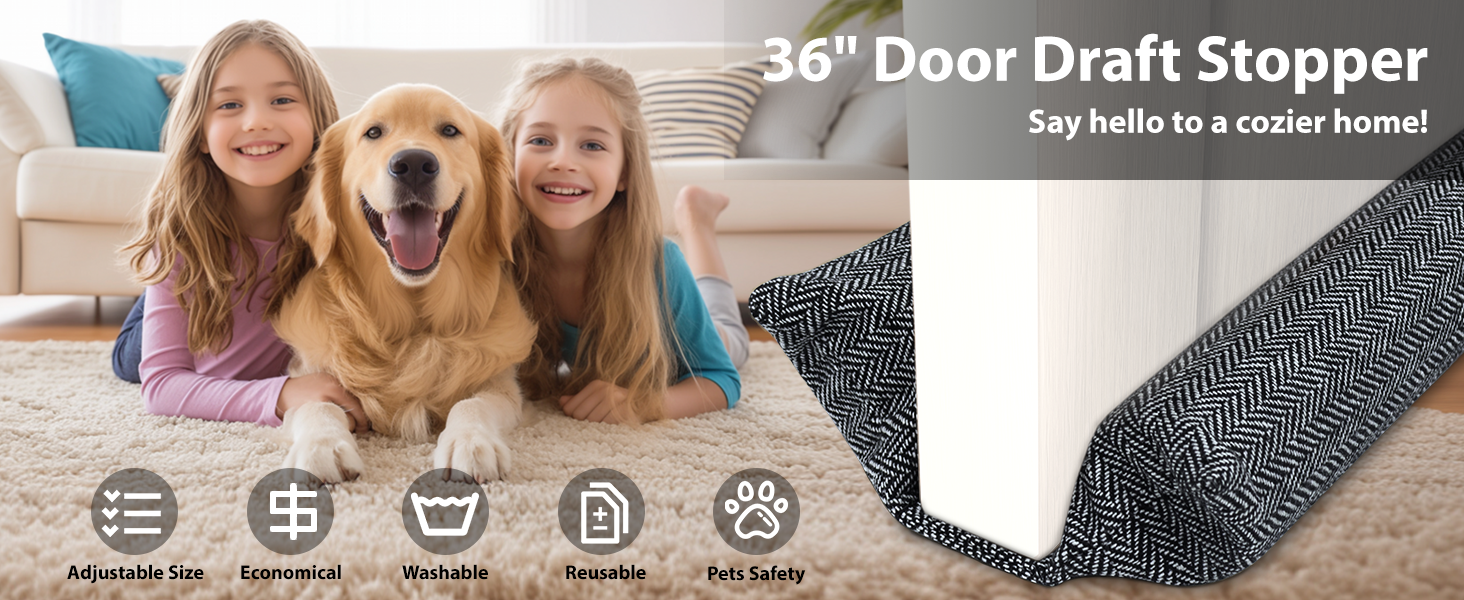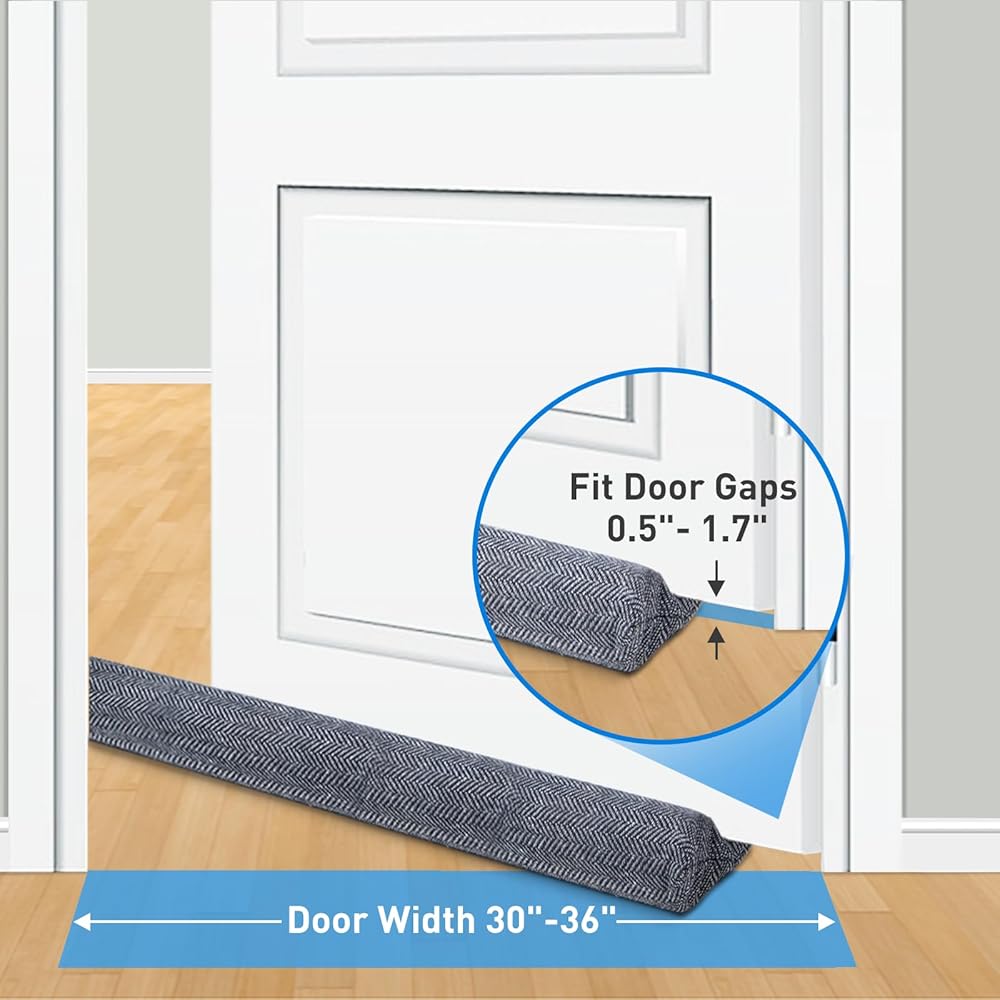 سدادة مسودة الباب لأسفل الباب، حاجز مسودة الباب 36 بوصة يحجب ضوضاء الهواء البارد الساخن لفجوة تصل إلى 1.7 بوصة تحت الباب، يناسب واقي مسودة الباب بعرض 30-36 بوصة، سهل التركيب وقابل للغسل