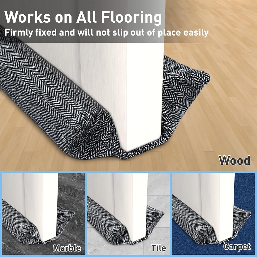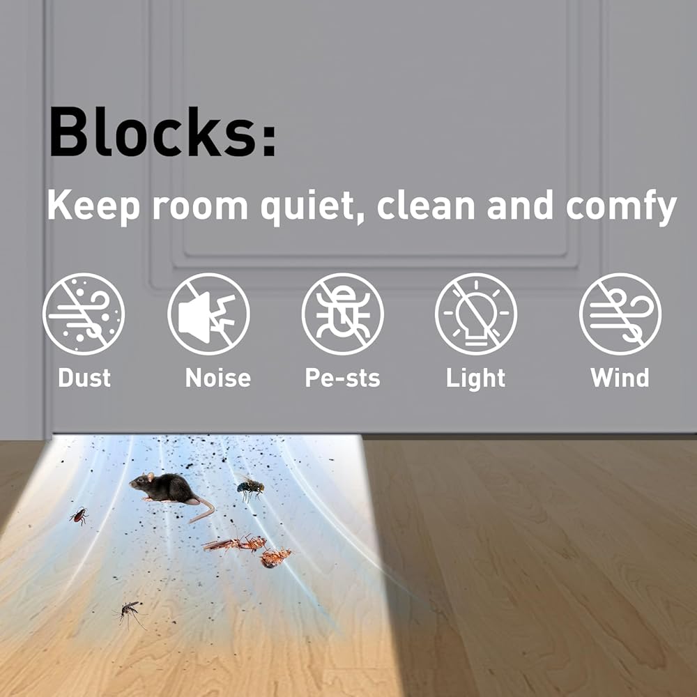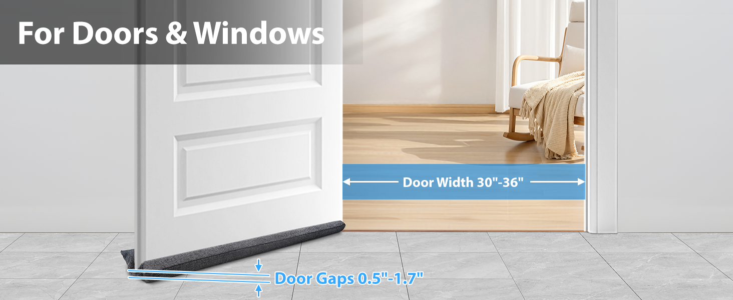 【يناسب سدادة الباب مقاس 30-36 بوصة】تناسب عرض الأبواب مقاس 30 بوصة و32 بوصة و34 بوصة و36 بوصة، مع فجوة سفلية من 0.5 بوصة إلى 1.7 بوصة، ويمكن أن تنزلق بسلاسة على أسطح الأرضيات مثل السجاد والفينيل والبلاط والخشب والرخام دون أن يحدث أي أصوات خدش مزعجة على الأرض أو يسبب أي ضرر للأرضية. قم بالقياس قبل الشراء لضمان المقاس المناسب لفجوة بابك.