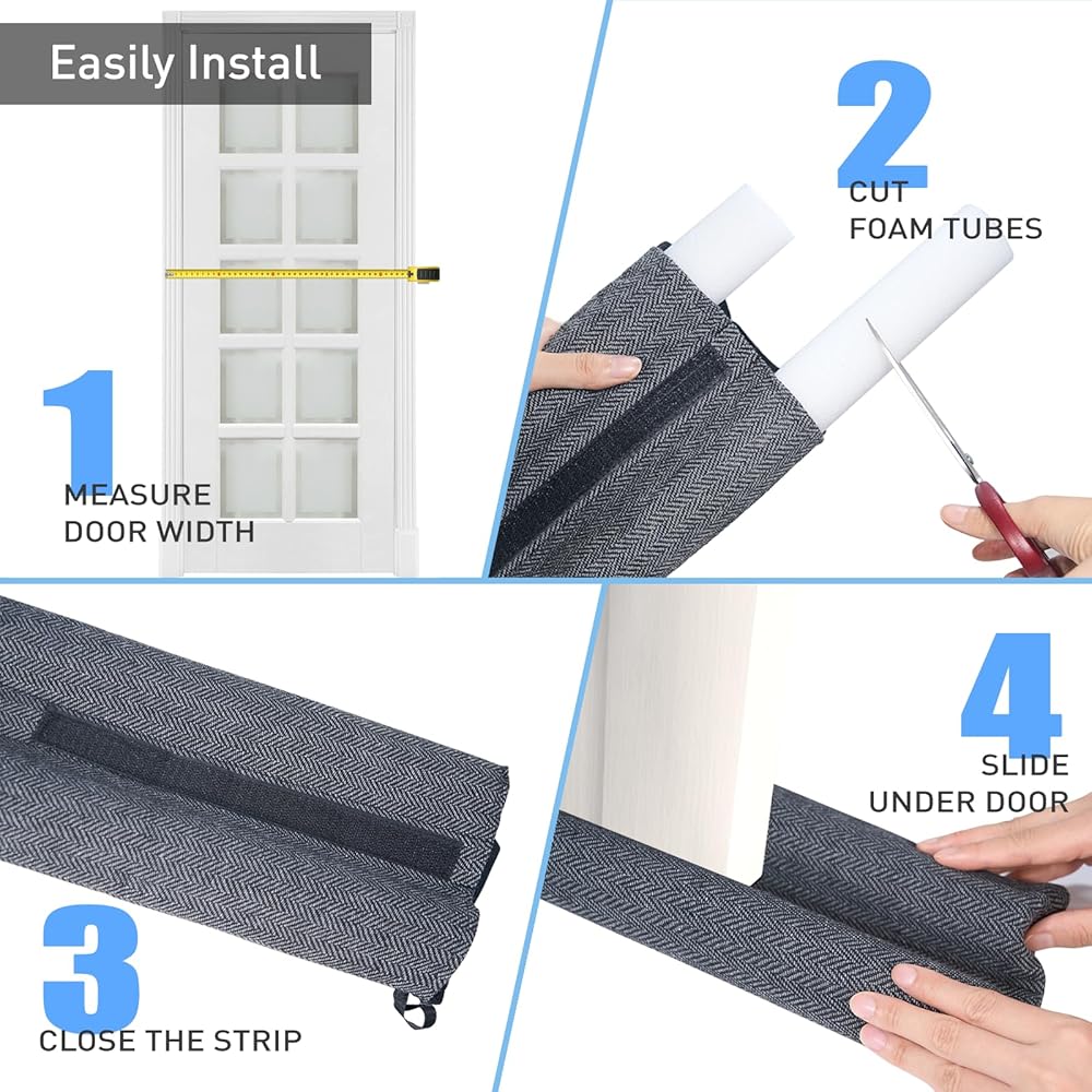 【حجب متعدد الاستخدامات】يساعدك سدادة تيار الهواء الموجودة أسفل الباب على خفض فواتير الطاقة الخاصة بك عن طريق منع تدفق الهواء بشكل فعال، مما يضمن بقاء منزلك دافئًا في الشتاء وباردًا في الصيف. كما أنه يعمل أيضًا كحاجز للفجوات تحت الباب، والذي يمكن أن يمنع الروائح والغبار والضوء والضوضاء أو الرياح وحتى الحيوانات الصغيرة مثل الحشرات من غزو مساحتك، مما يسمح لك بالاستمتاع بأحلام سعيدة.