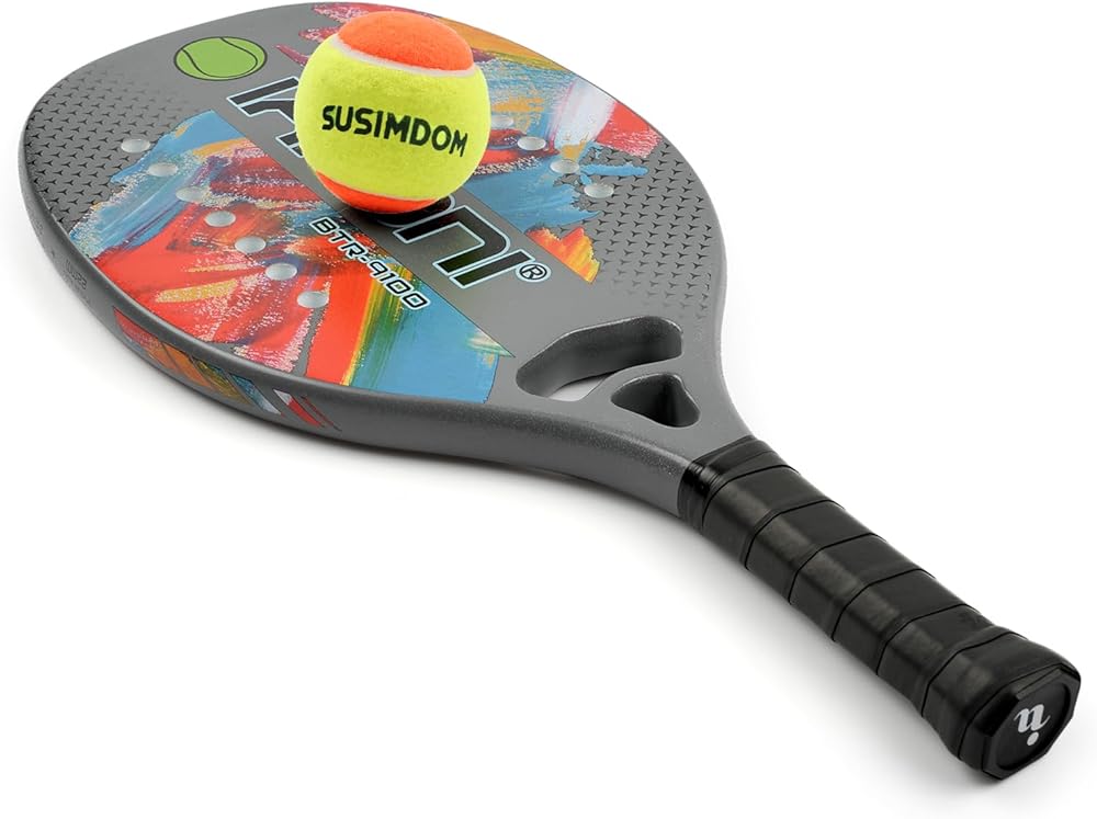 مصنوع من أجل تنس المجداف على الشاطئ، مطاط طبيعي متين عالي الكثافة لشعور رائع وتحكم مثالي. يمكن استخدامها أيضًا للعب لعبة الإمساك مع حيواناتك الأليفة. ليس من السهل أن تدمر حيواناتك الأليفة.