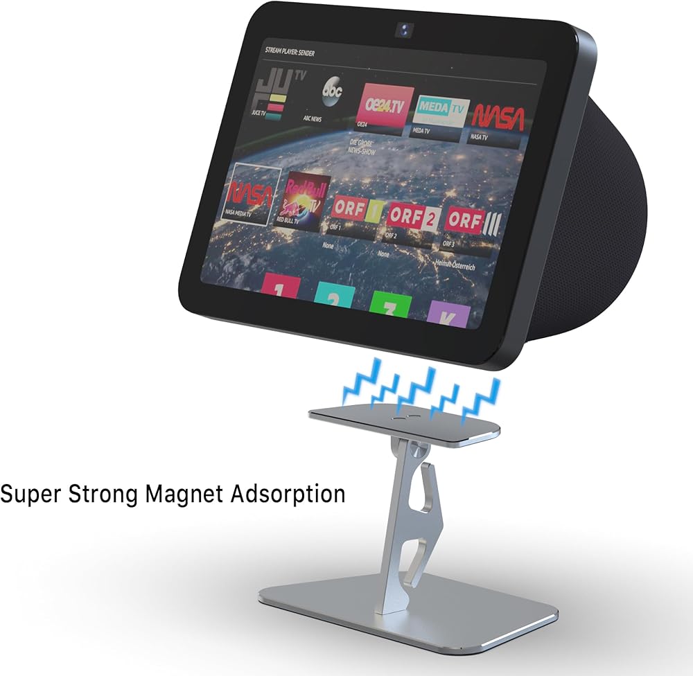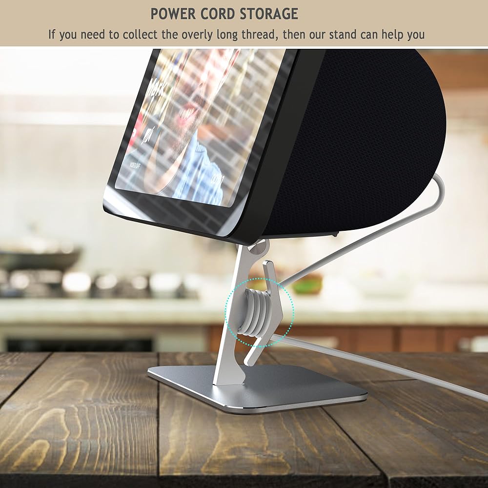 حامل معدني قابل للتعديل لـ E cho S how 8 (Gen 3) - قاعدة مغناطيسية بتصميم أنيق من الألومنيوم، ثبات معزز وإدارة كابلات مدمجة لاستخدام المطبخ وسطح المكتب (فضي)