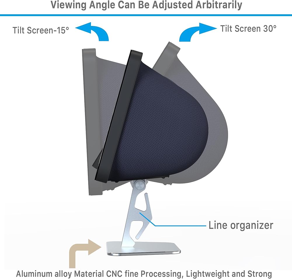 • زوايا قابلة للتعديل: يسمح الحامل بالدوران المريح لتحقيق أفضل زاوية رؤية لـ E cho S how 8(Gen 3) ؛ حافظ على راحتك البصرية سواء كنت واقفاً أو جالساً.