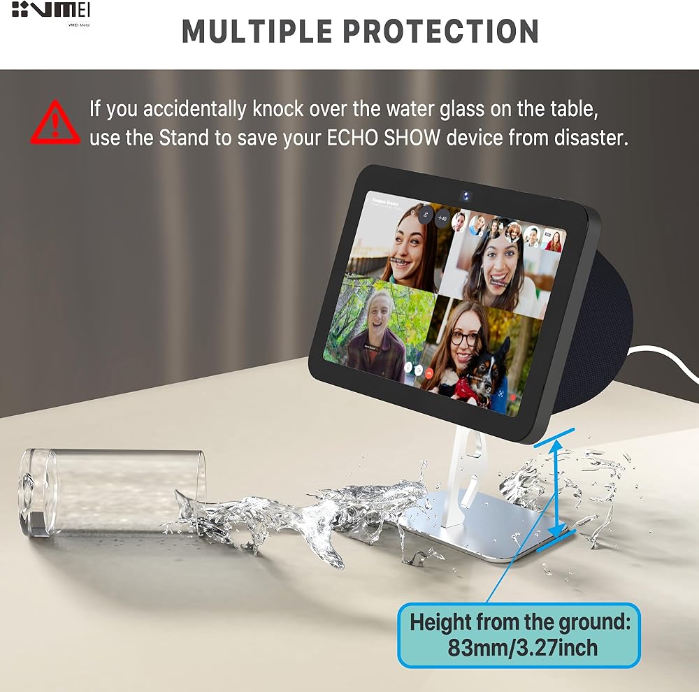 • مصمم للحماية: يضمن ارتفاع الحامل 90 مم ميزة حماية لجهاز E cho S how 8(Gen 3) ؛ يبقيه آمنًا من انسكابات السوائل العرضية في المطبخ أو على الطاولة.
