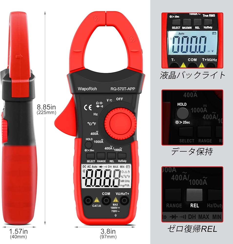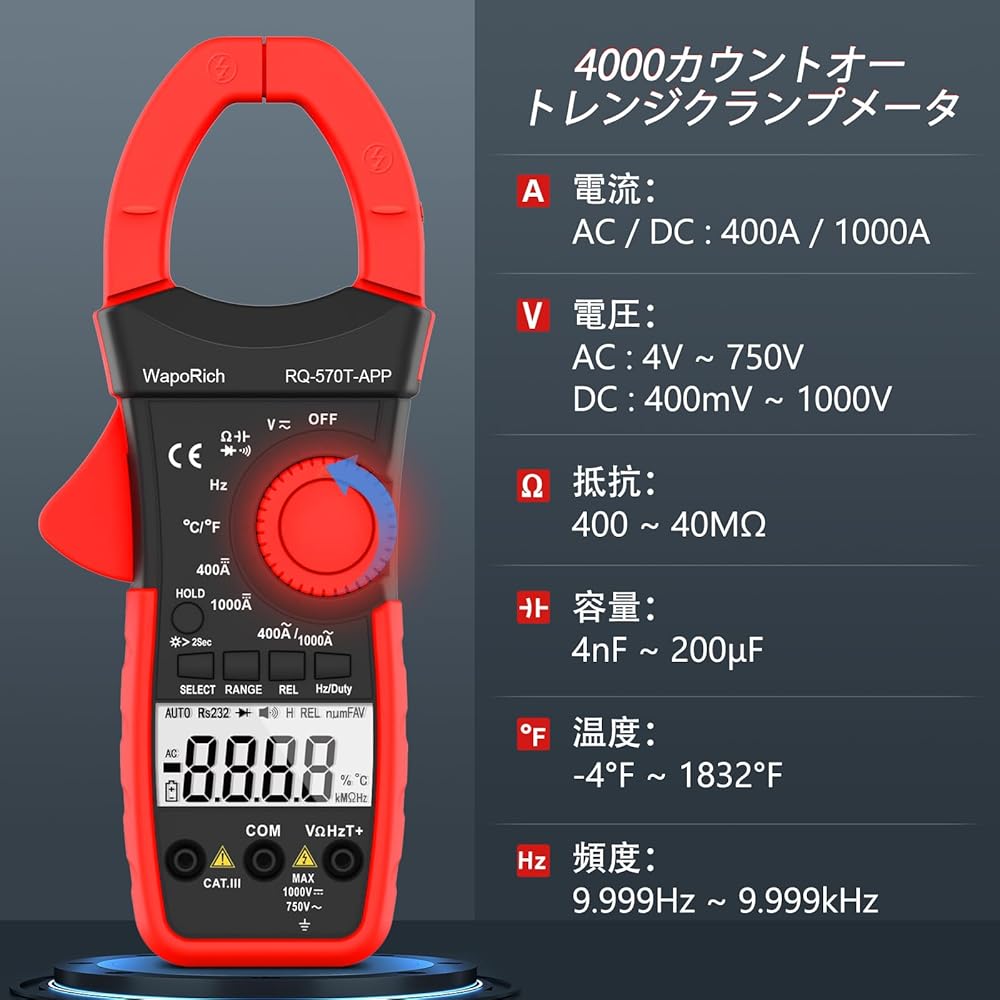 WapuRich RQ-570T-APP 4000 Counts Auto-ranging Digital Clamp Meter
