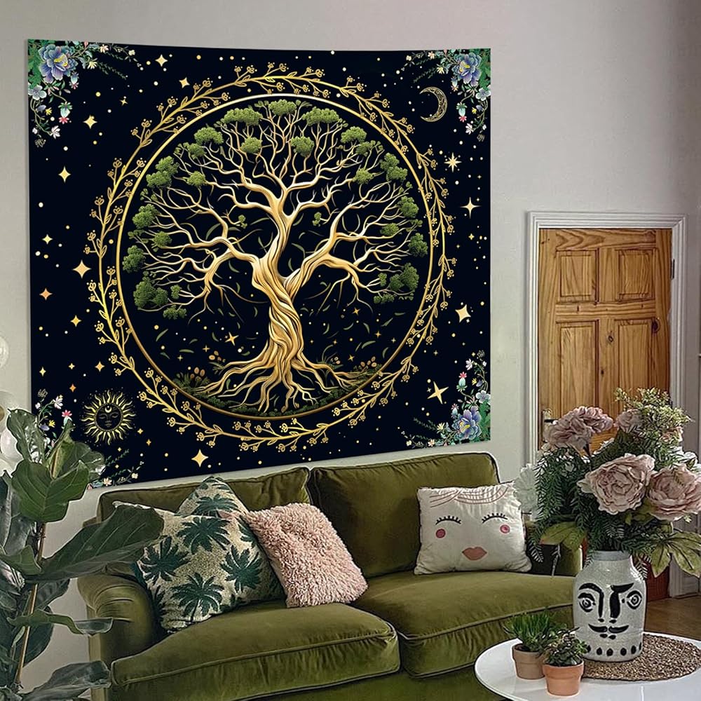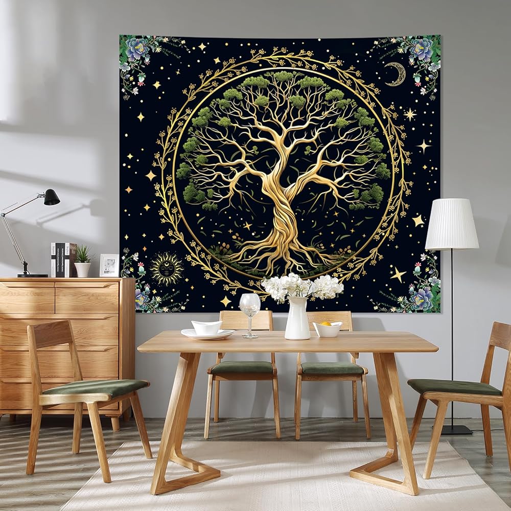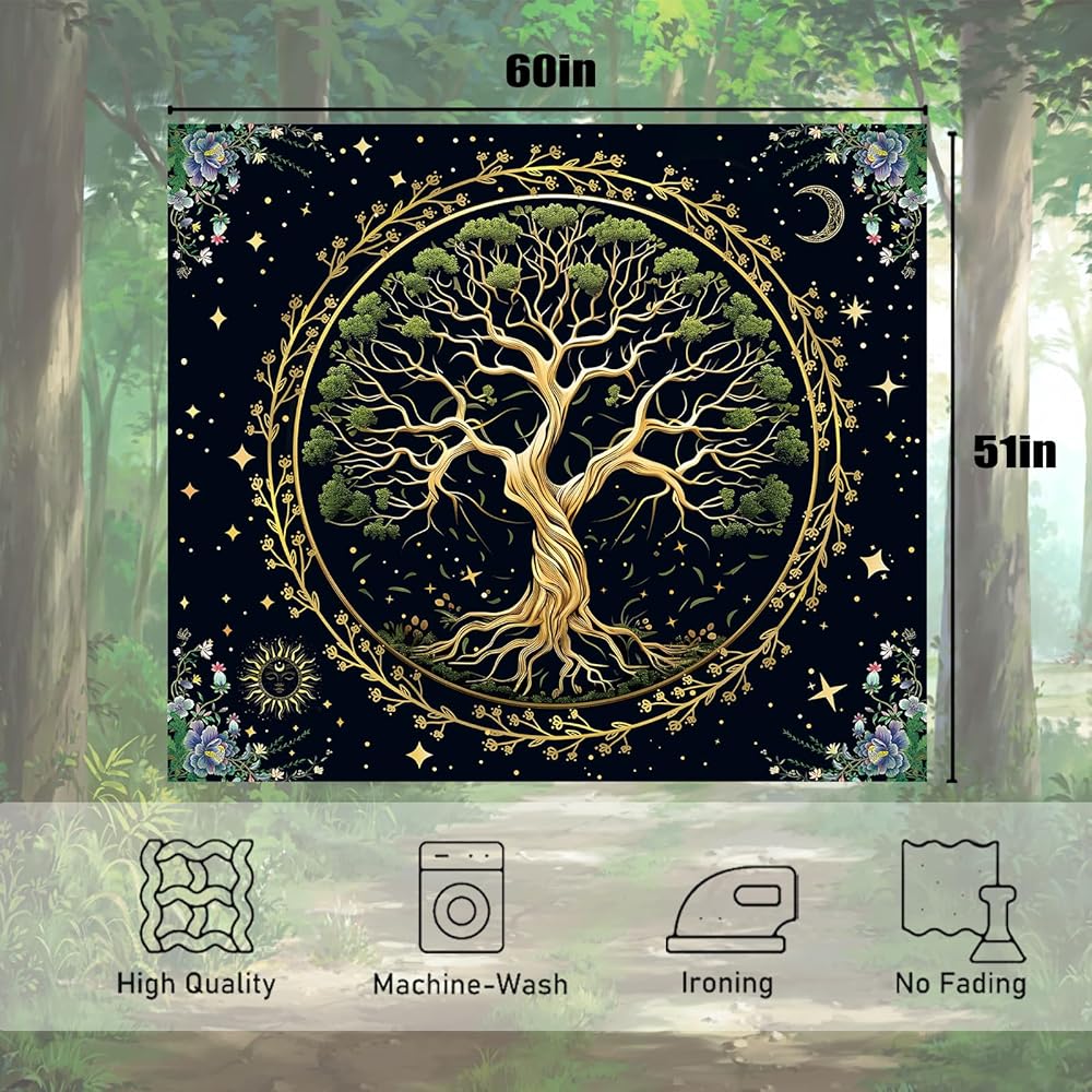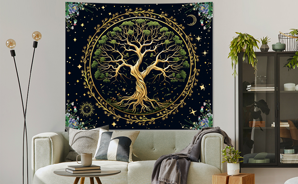 【 خامة عالية الجودة 】: نسيج شجرة الحياة الطبيعية الخاص بنا مصنوع من نسيج البوليستر بنسبة 100%. ناعم، ومتين، وسهل التنظيف، وليس من السهل أن يبهت