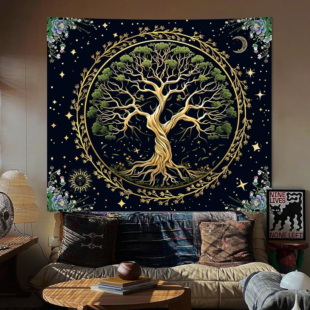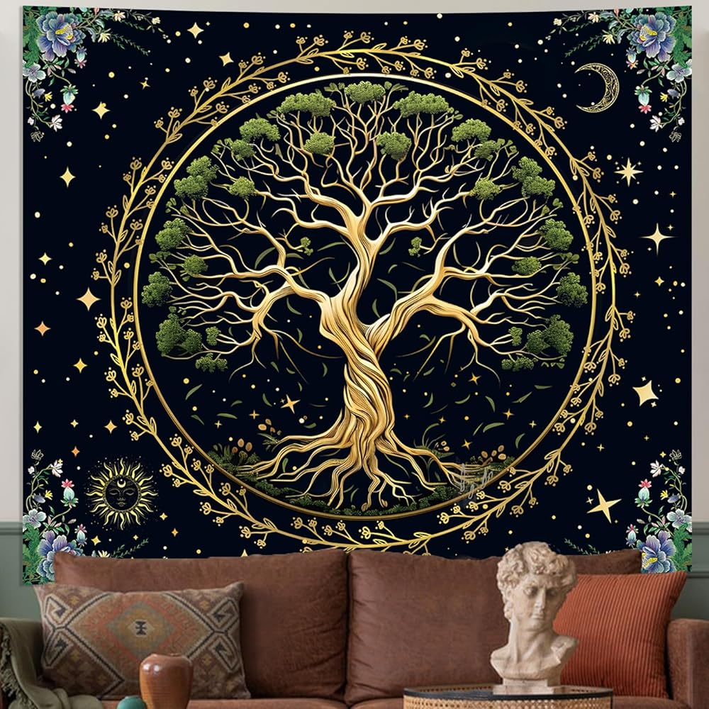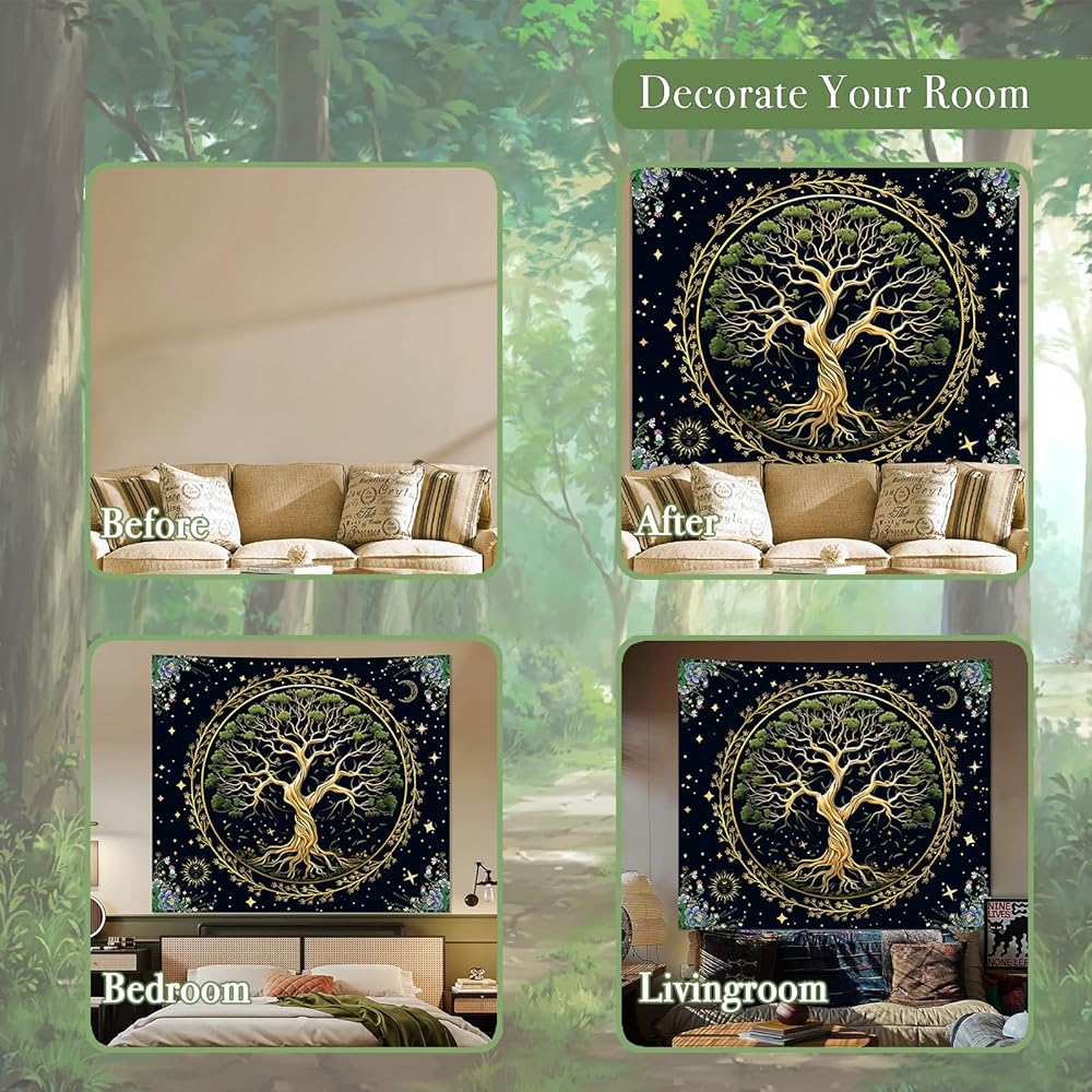 【 خامة عالية الجودة 】: نسيج شجرة الحياة الطبيعية الخاص بنا مصنوع من نسيج البوليستر بنسبة 100%. ناعم، ومتين، وسهل التنظيف، وليس من السهل أن يبهت