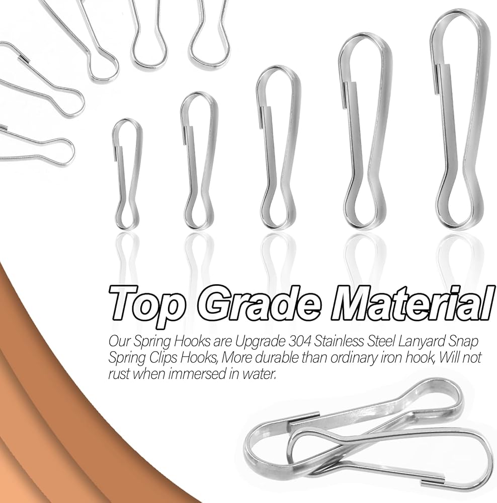 🥇 Our Spring Hooks are Upgrade 304 Stainless Steel Lanyard Snap Spring Clips Hooks, More durable than ordinary iron hook, Will not rust when immersed in water.