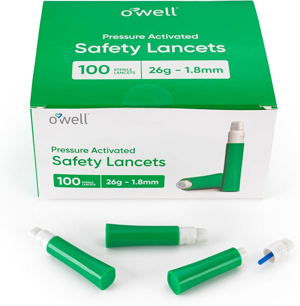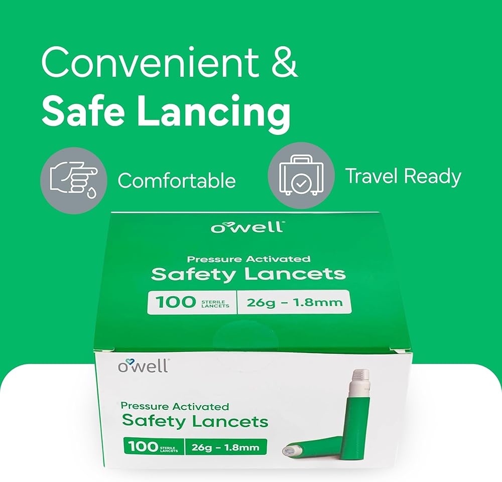 وعد OWELL - احتضن مستوى جديدًا من السهولة والموثوقية في مراقبة نسبة الجلوكوز في الدم باستخدام مشارطك المبتكرة التي تستخدم لمرة واحدة - شريكك في إدارة الرعاية الصحية في صناديق جاهزة للاستخدام سعة 100 قيراط.