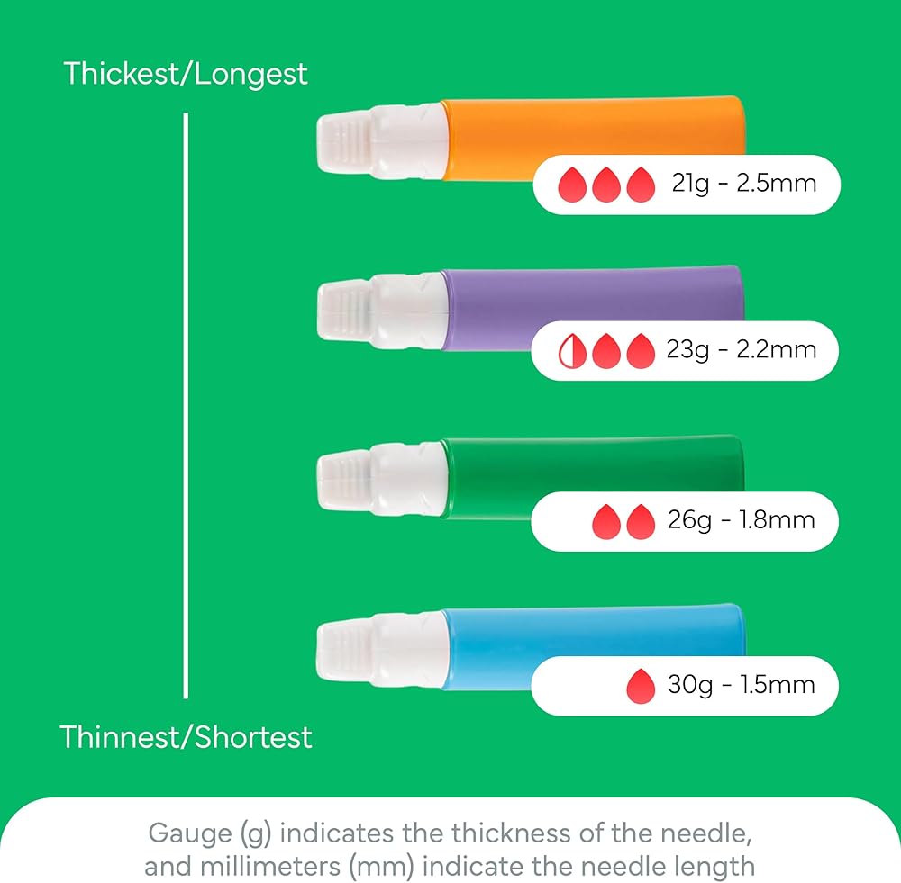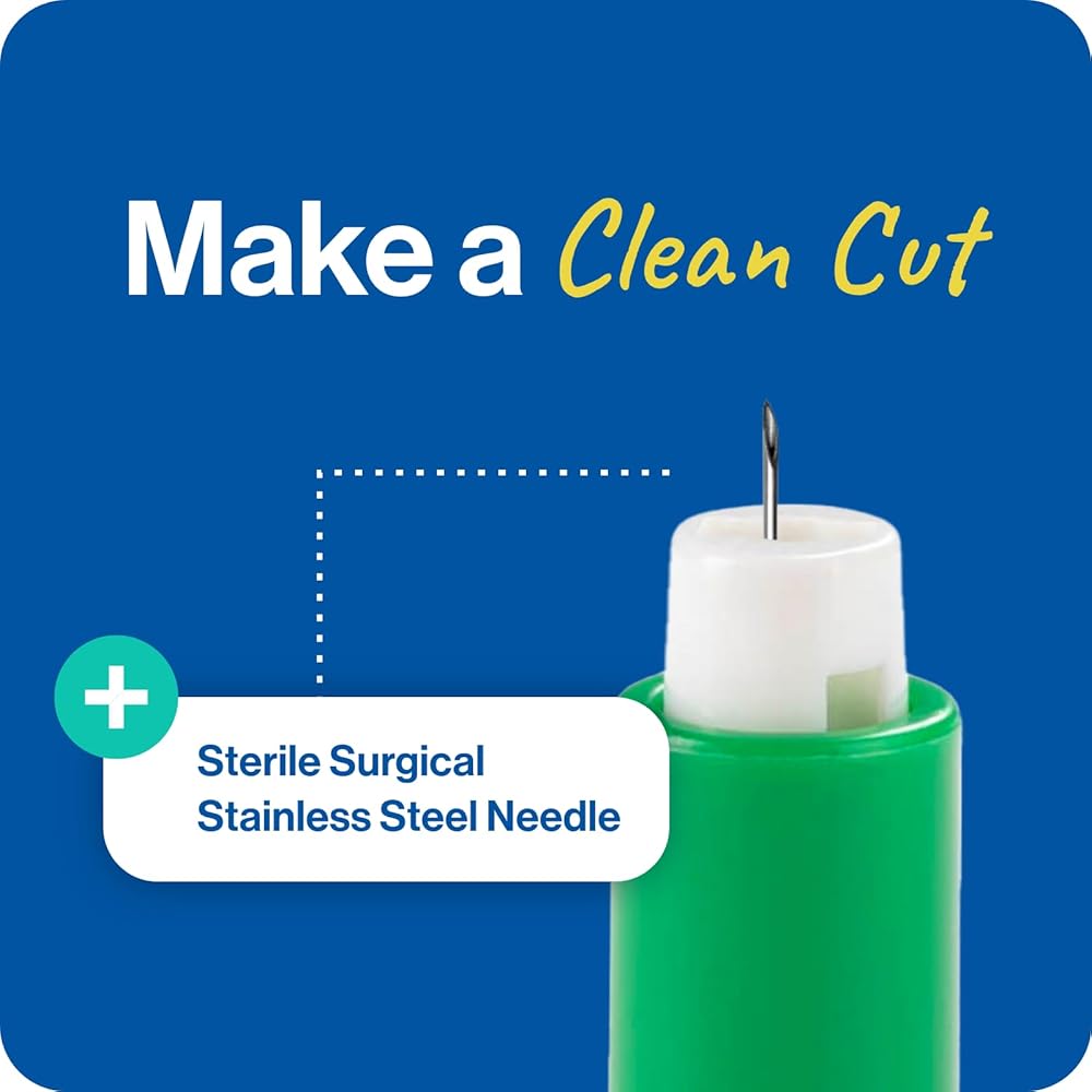 اللف والضغط والوخز - استمتع بعدم التحميل أو التعديل أو الضغط. بفضل مجموعة متنوعة من الأحجام، توفر مشارط السكري التي يتم تنشيطها بالضغط لمسة سريعة ودقيقة من خلال الجلد الرقيق أو المتصلب.