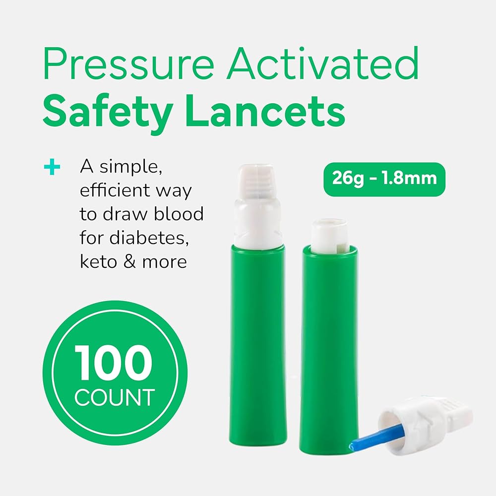 الدقة في متناول يدك - سواء كنت تختبر نظام الكيتو أو مرض السكري أو الصحة العامة، يمكنك القيام بذلك في أي مكان بسهولة بفضل الغطاء البلاستيكي الآمن وغطاء مشارط السكر في الدم.