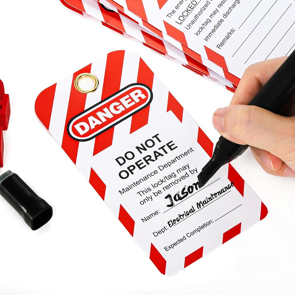 WUWEOT 24 Set of Universal Multi Pole Breaker Safety Lock and Danger Do Not Operate Tags with Nylon Zip Ties, equipped with marking and tagging, such as lock and tag, is used to clearly identify the locked-out circuit breaker. With a secure locking mechanism, this lockout kit effectively prevents accidental operations, prioritizing the safety of both personnel and equipment