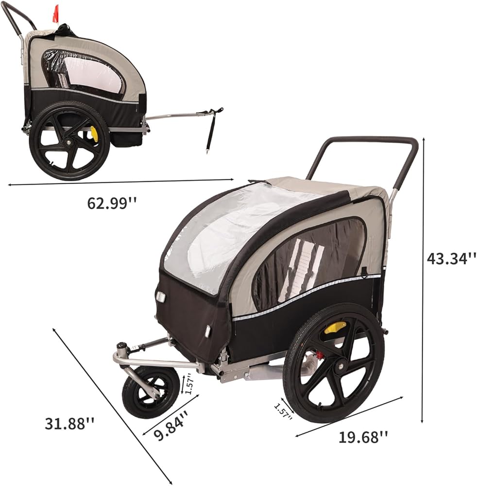 Versatile 2-in-1 Design: Featuring a detachable swivel front wheel, this trailer easily converts into a bike trailer or stroller, offering flexibility for parents on the go.