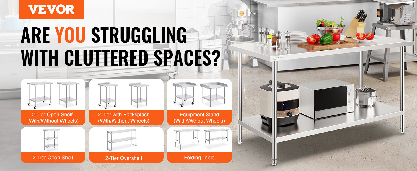 تطبيقات متعددة الاستخدامات: بالإضافة إلى التخزين، يمكن استخدام طاولتنا لتقطيع الخضروات وعجن العجين وتقطيع اللحوم وغيرها من المهام المتعلقة بالمطبخ. إنه مثالي للاستخدام في الحانات والمطاعم والفنادق والبوفيهات وفعاليات تقديم الطعام والأنشطة المدرسية أو غرف استراحة المكاتب.